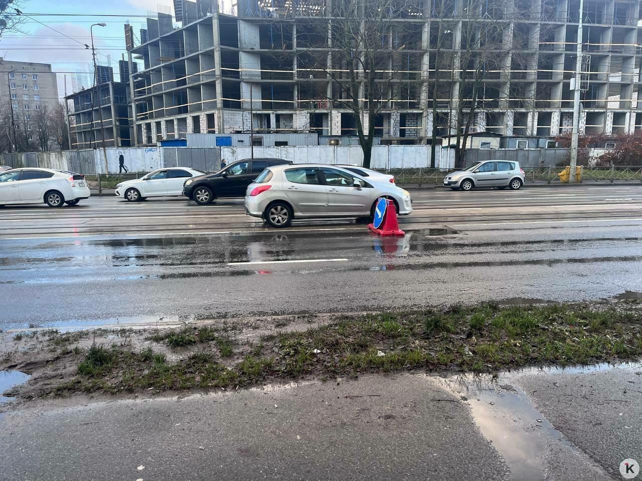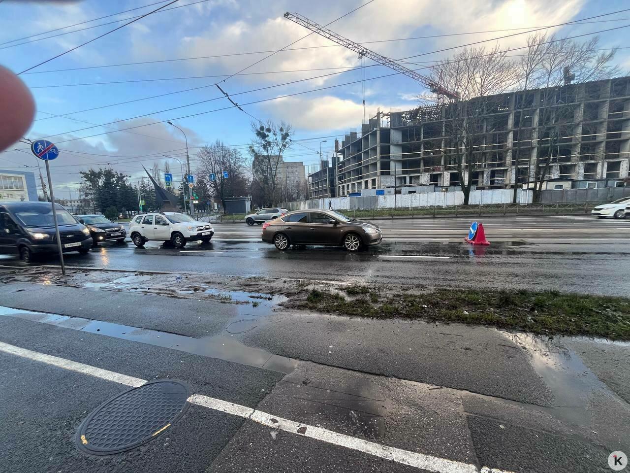 В Калининграде недалеко от перекрёстка Советского проспекта и Яналова образовалась глубокая дорожная яма. Глубина пробоины составляет не менее 10 сантиметров. Один из автомобилистов рассказал, что вечером угодил в неё и едва не потерял управление.
