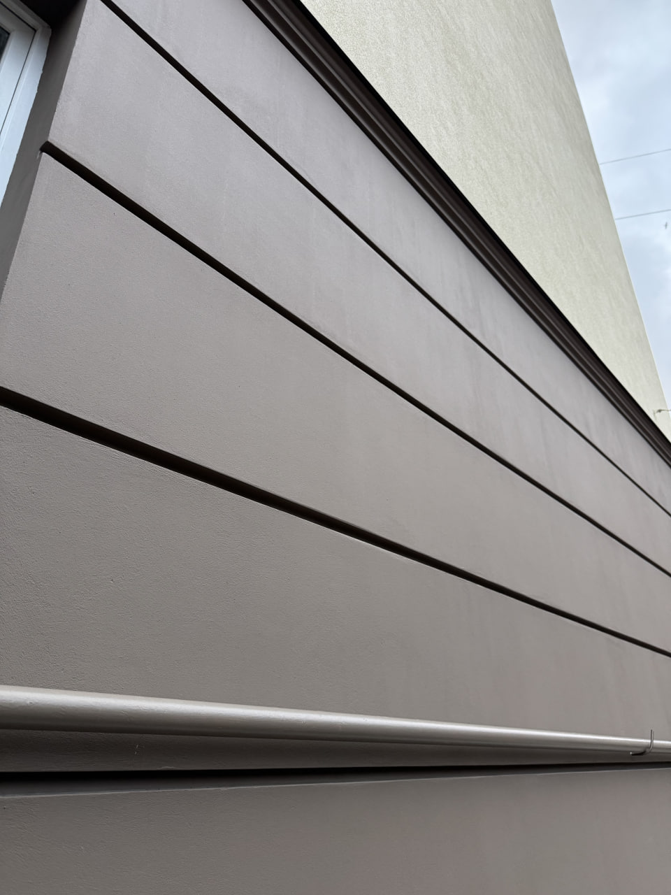 Полностью обновили входные группы: отремонтировали крыльца, заменили козырьки и двери, сделали новую отмостку вокруг дома. Фасад тоже стал наряднее — окна оформили декоративными элементами, а первый этаж подчеркнули рустовкой.