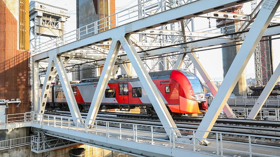 В декабре 2024-го по мосту открыто движение поездов. В течение 2025 года продолжались строительные работы, не влияющие на движение составов. В частности – наладка подъемного оборудования центрального пролетного строения, работы по архитектурному оформлению башен опор кортеновской сталью, укрепление откосов и т.д.