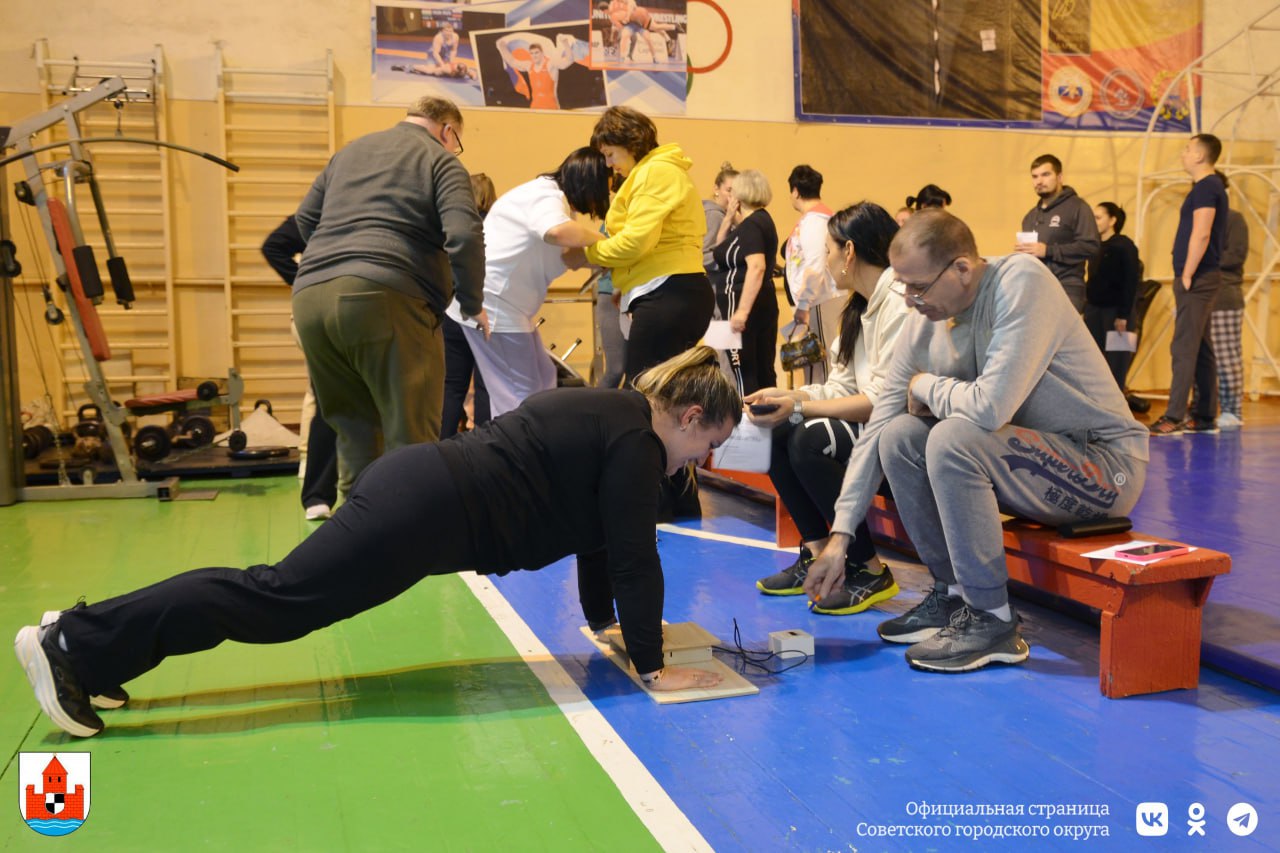 В программе были подтягивания, отжимания, наклоны вперёд из положения стоя, челночный бег – нормативы, соответствующие возрастным ступеням участников.