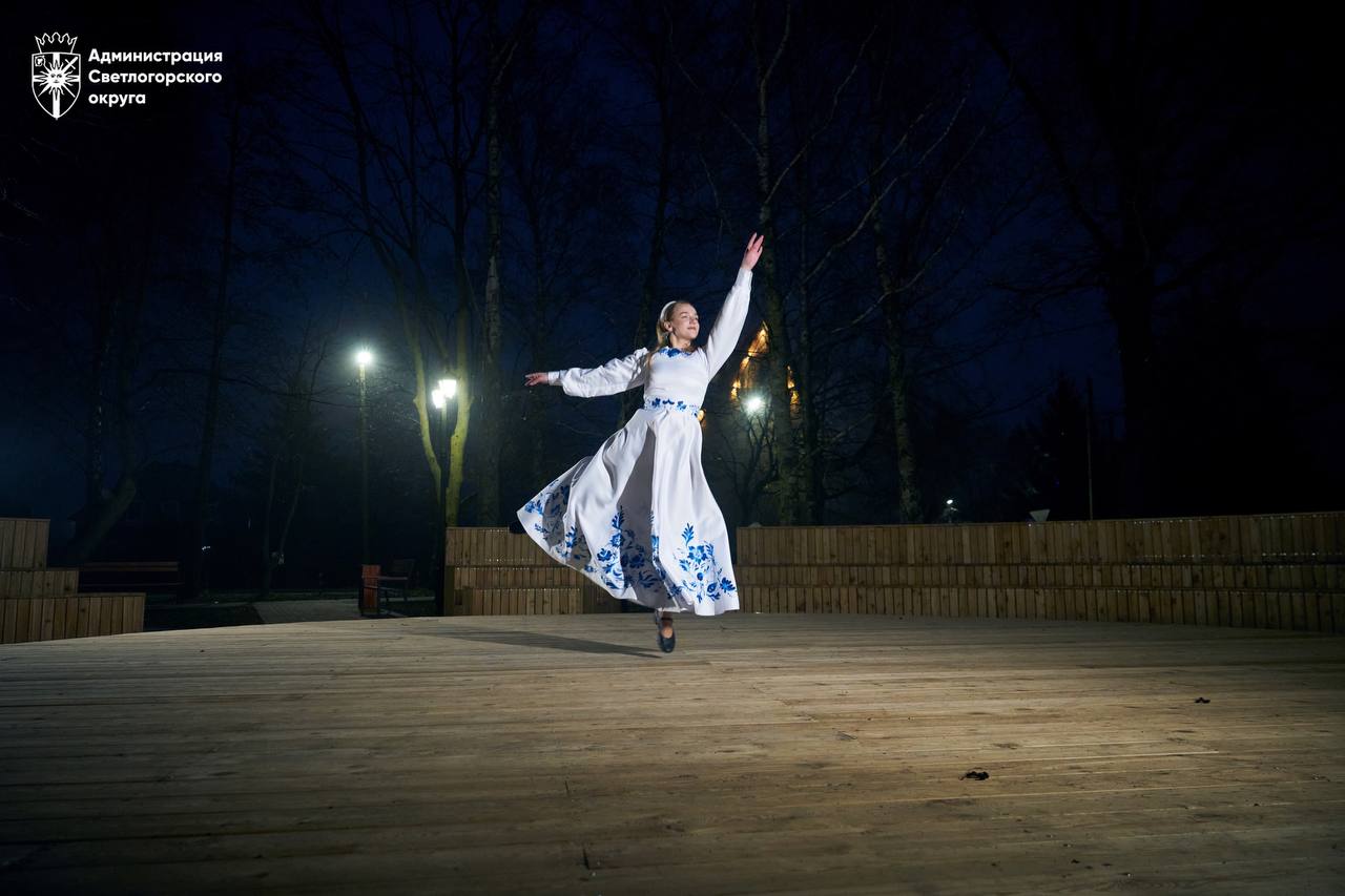 Аки царевна-лебедь– солистка ансамбля эстрадного танца Дома культуры посёлка Приморье, испробовала сцену по назначению. Источник: администрация Светлогорского городского округа