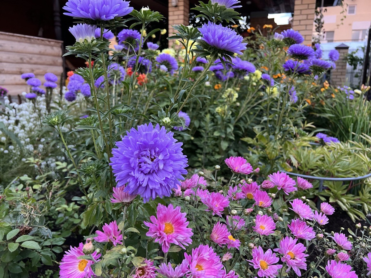 С намерением выбросить мучившиеся растения, выяснилось, что они все же радуют глаз. На днях было решено вычистить участок цветника. Важный момент: осенью там должны зацвести безвременники, а сейчас он выглядел пустым. Для его заполнения были выбраны не просто рассада, а почти цветущие астры.