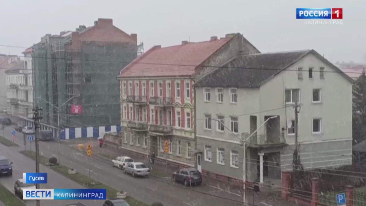 А сейчас кадры, которые расскажут о превратностях калининградской погоды. Они сняты сегодня в разгар дня, когда в Калининграде светило солнце. В это время за 100 км от областного центра наступила настоящая зима, пошел снег.