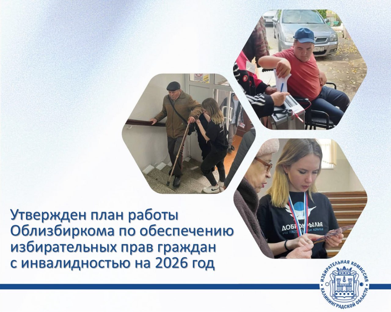 совместная работа с администрациями муниципальных образований, Калининградским добровольческим центром для совершенствования доступной среды при реализации избирательных прав граждан с инвалидностью;