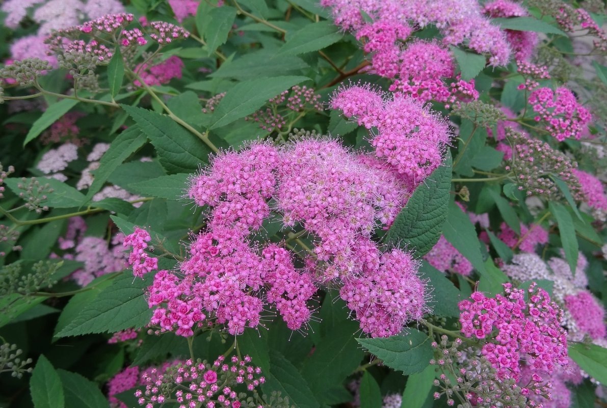 - Летнецветущие спиреи (например, японская спирея, Бумальда) начинают цвести в июне и продолжают до августа. Июль – это лучшее время для проведения санитарной и формирующей обрезки. Рекомендуется: