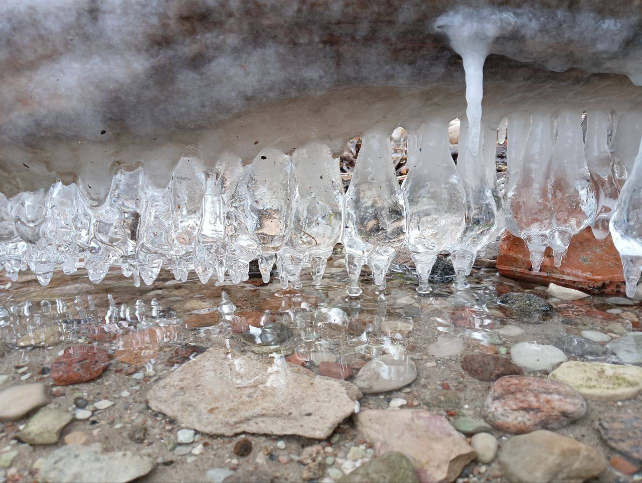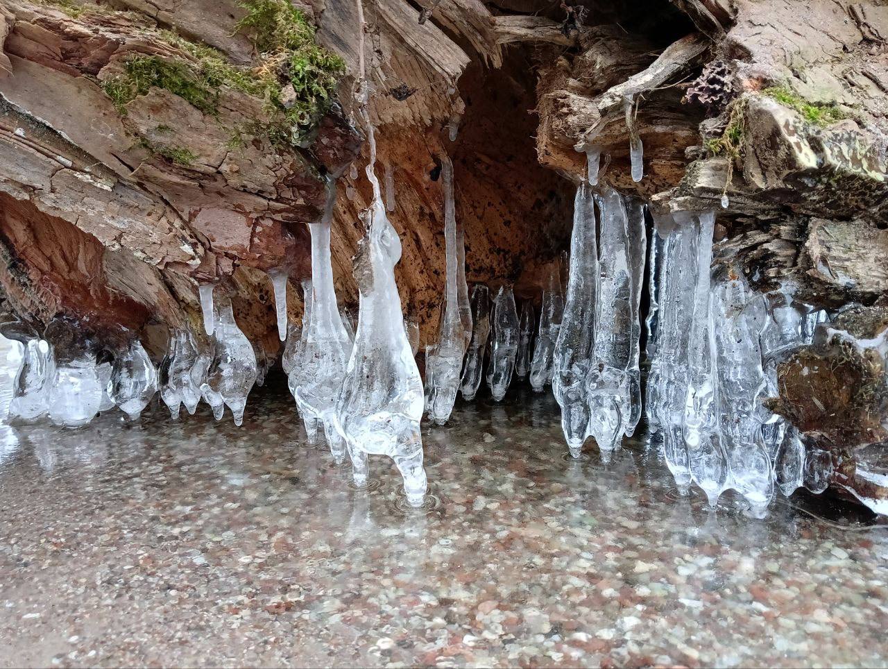 Это мороз и Виштынецкое озеро в коллаборации сотворили такие причудливые формы. На что ещё похоже? На летучих мышей, которых зачаровала Снежная Королева