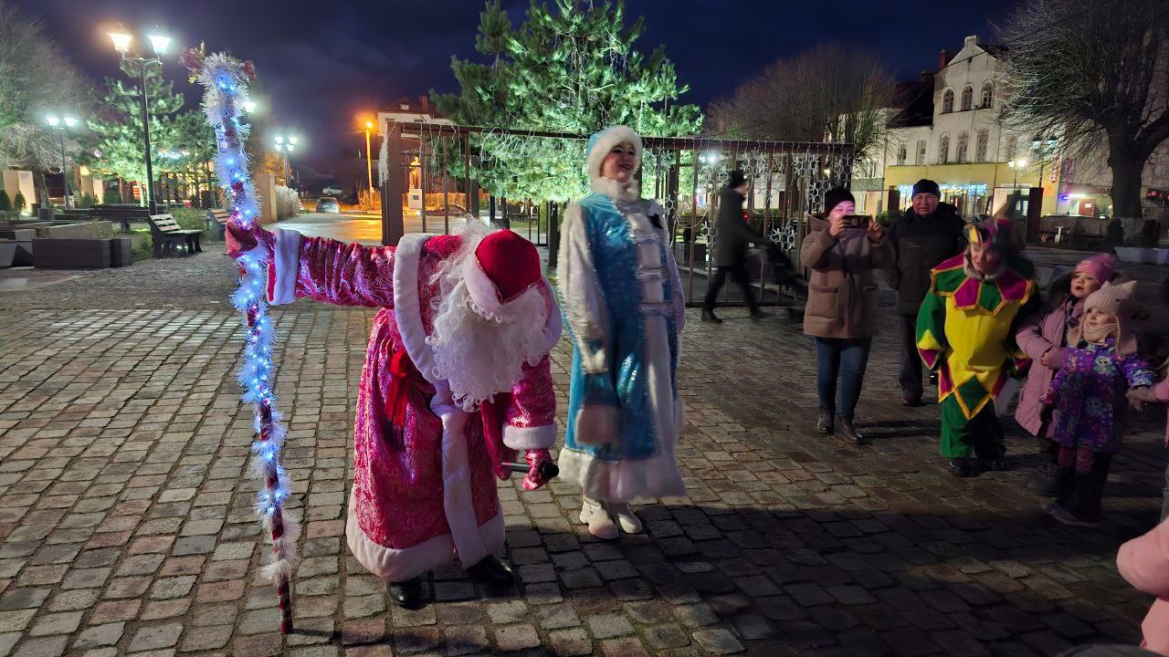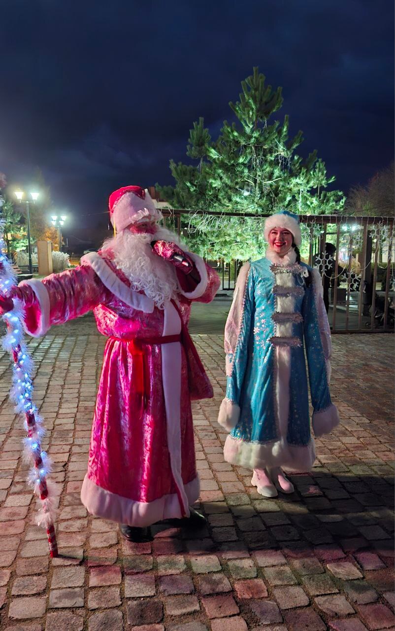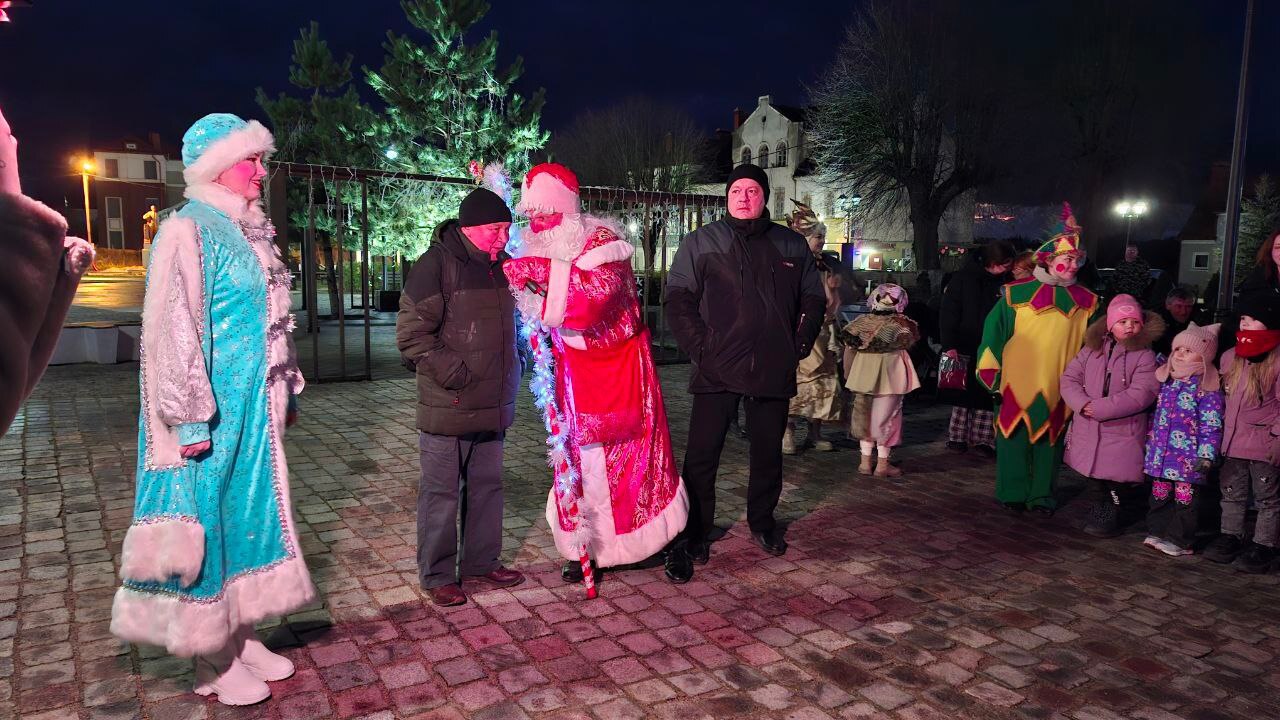 Как полагается, огни гирлянд в присутствии лично Деда Мороза и Снегурочки смогли зажечь только при поддержке детей.