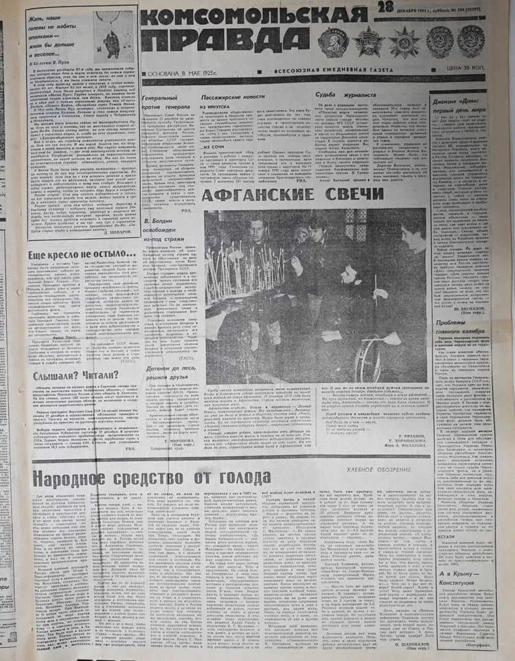 Настроения нет. Предпраздничный номер почти не отличается от обычного. Главная новость декабря — уход Михаила Горбачёва. Страна прощается не только с годом, но и с эпохой.