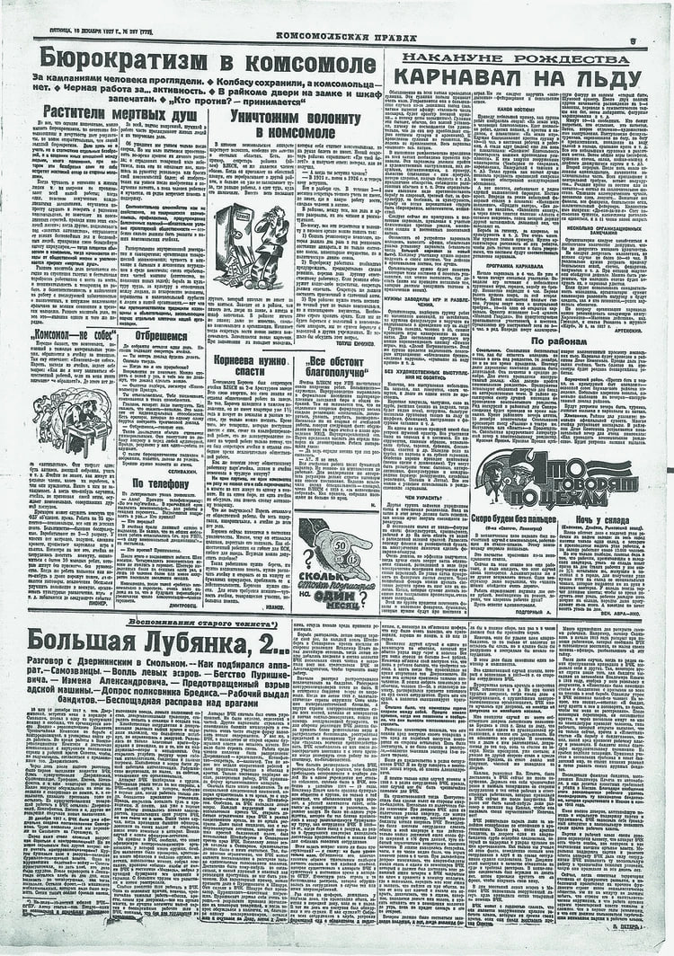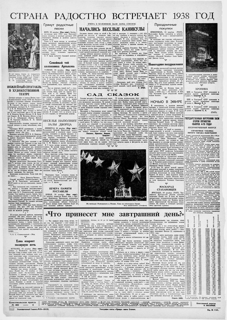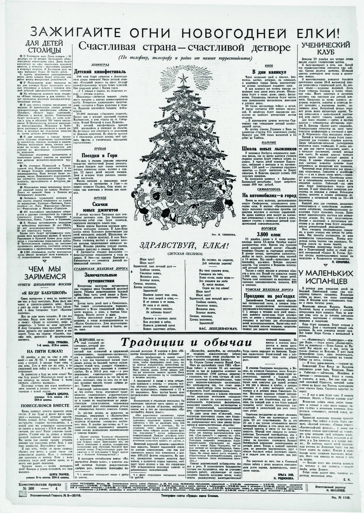 Новый год ещё не главный праздник. Его заслоняет Рождество, с которым власть ведёт упорную борьбу. Газета предлагает замену — «комсомольское Рождество»: массовые гуляния, ледовые представления и агитацию под музыку и смех.