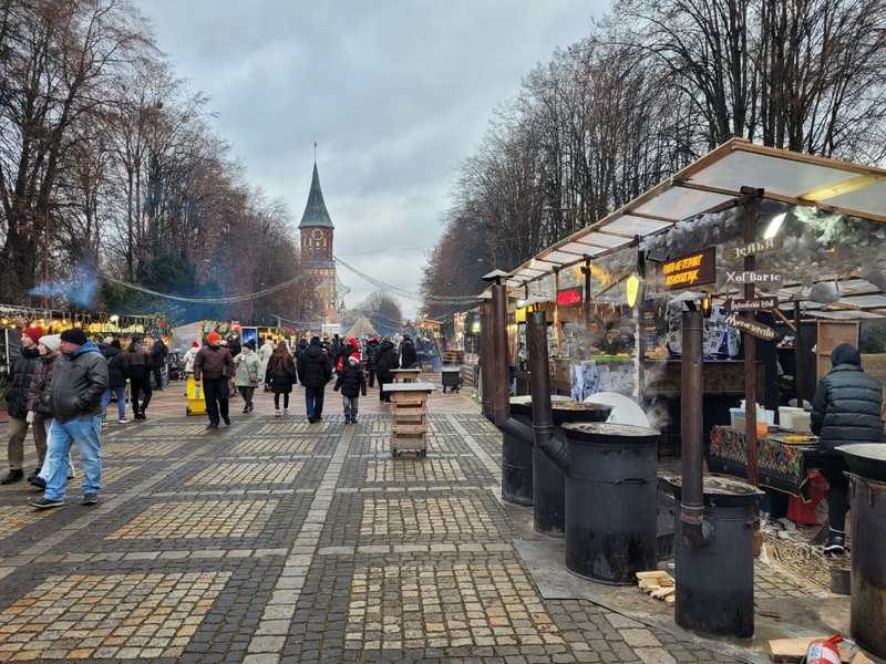 Остров Канта в Калининграде на две недели, по 11 января 2026 года, окутала дымом новогодняя ярмарка.