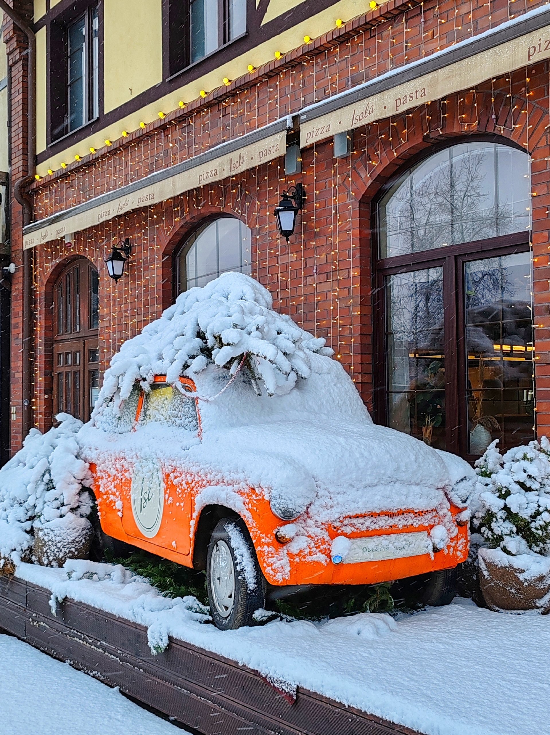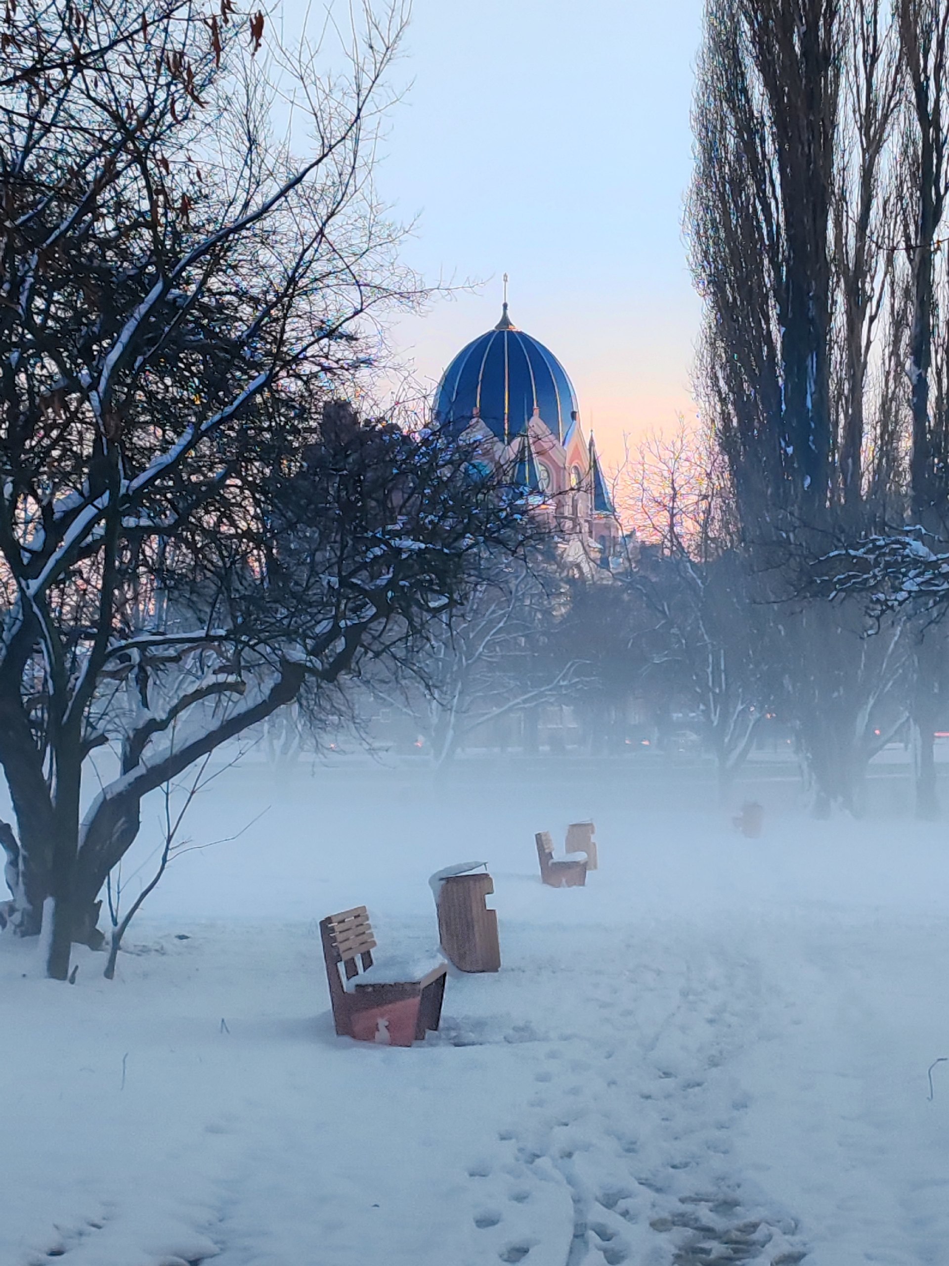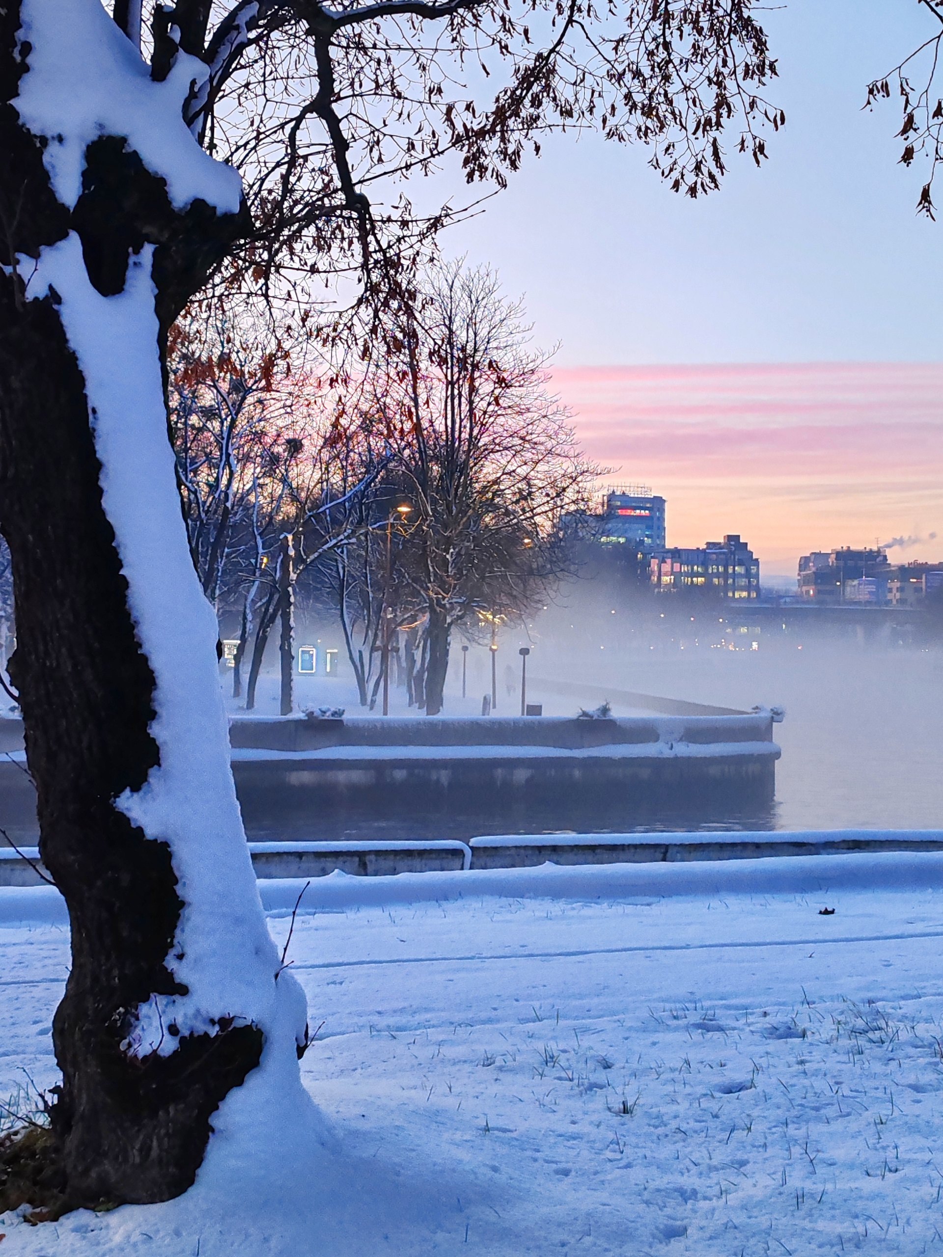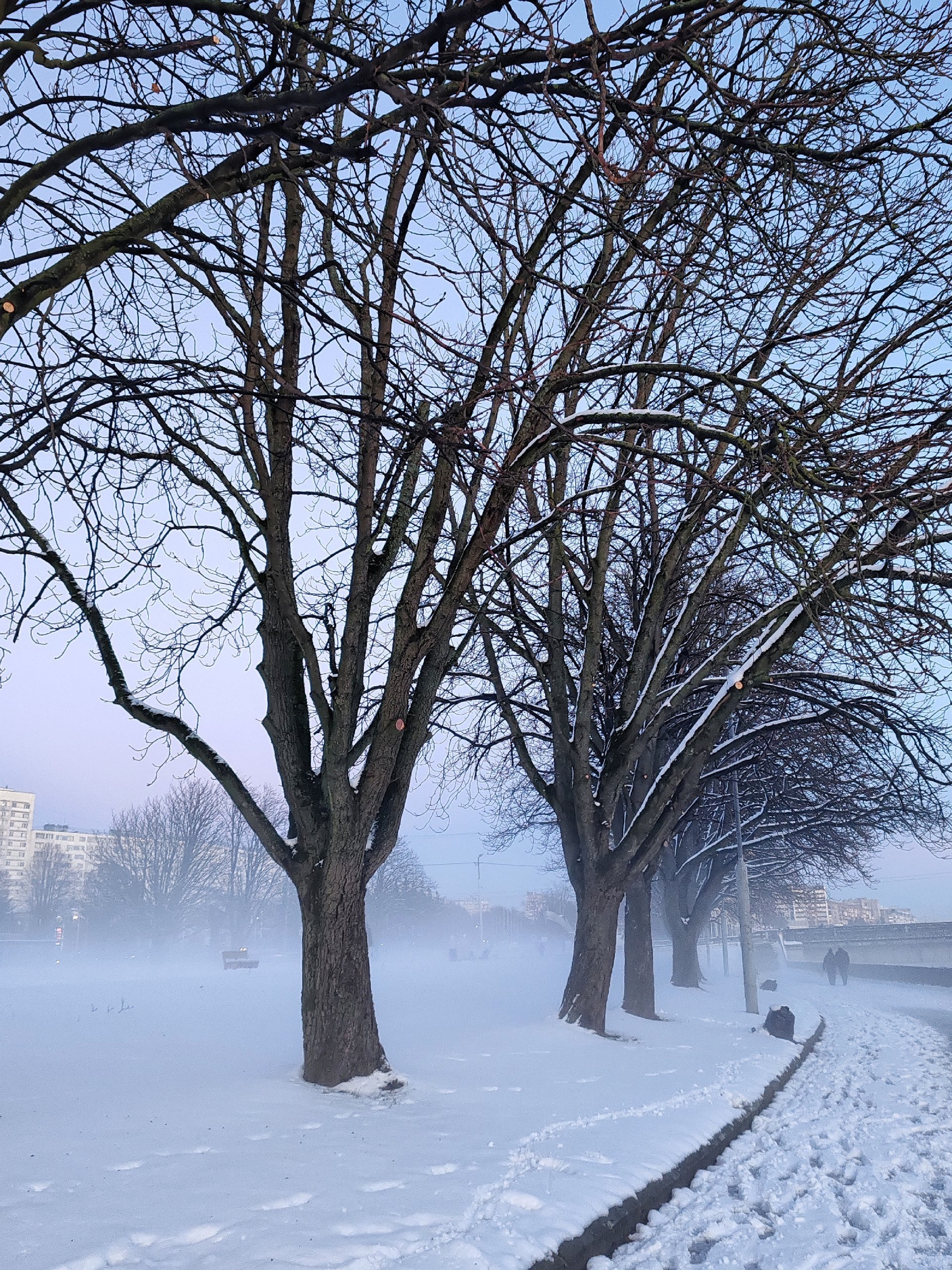 Как все-таки туман добавляем Калининграду загадочности! А снег дополняет!