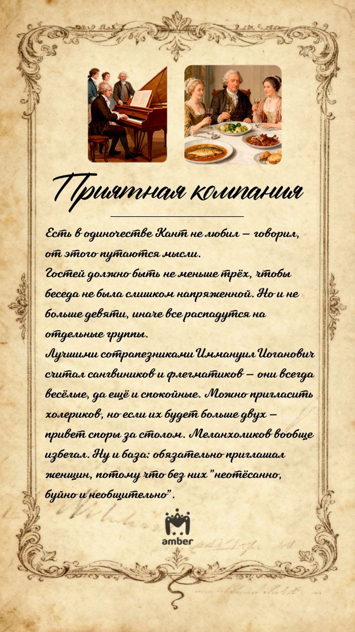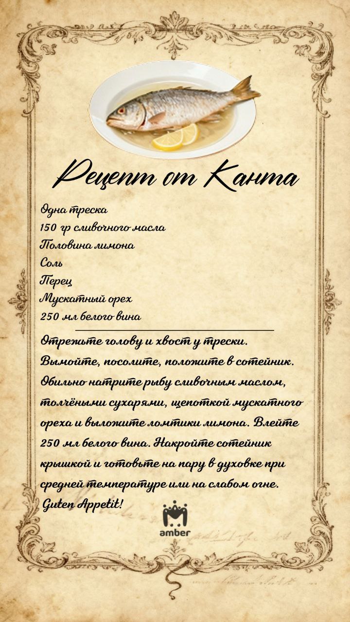 Философ всегда ответственно подходил к вопросам еды, поэтому разработал специальные правила: как правильно, где, с кем и с чем есть. Бонусом тем, кто дочитает до конца — рецепт трески по-кантовски.
