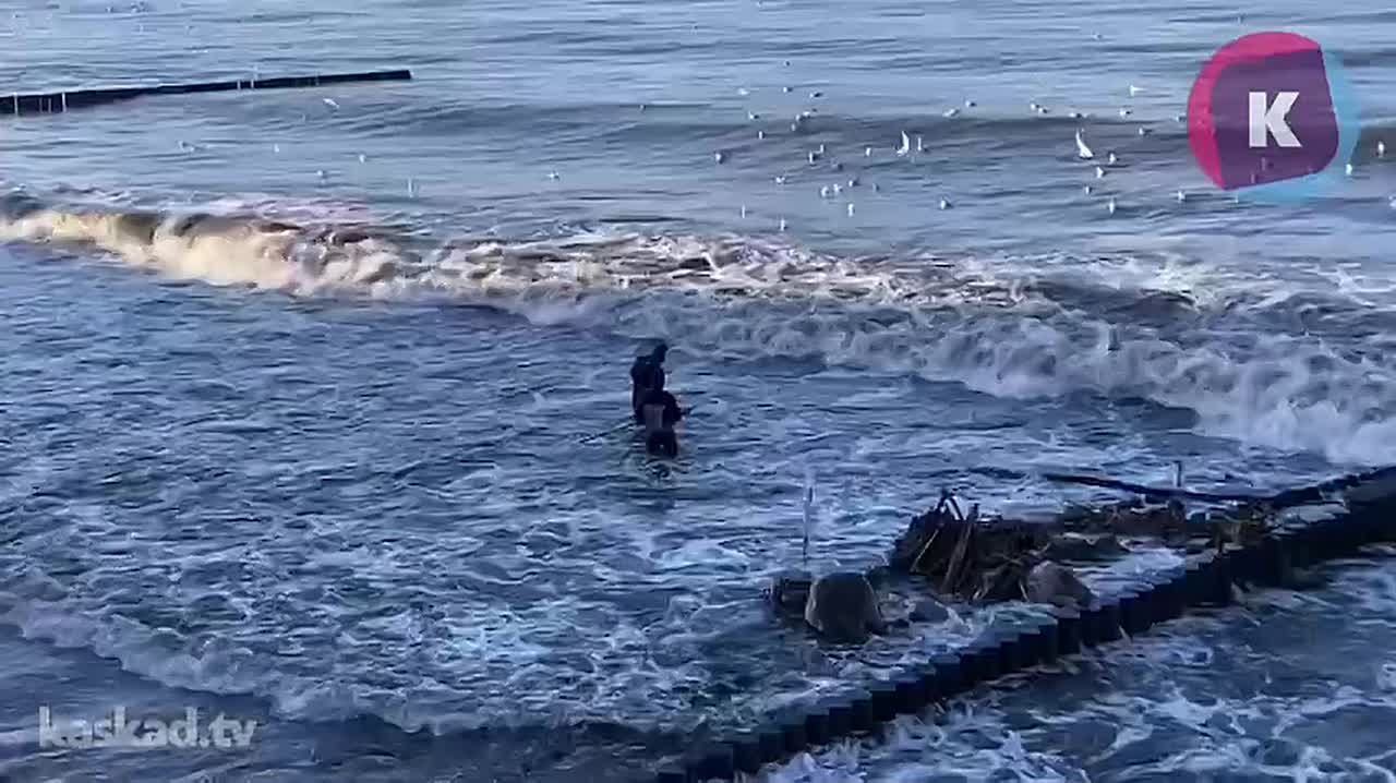 Покагорожане и гости любуются бушующим морем с набережной, кто-то ищет солнечный камень. Температура Балтики — около +5°C.