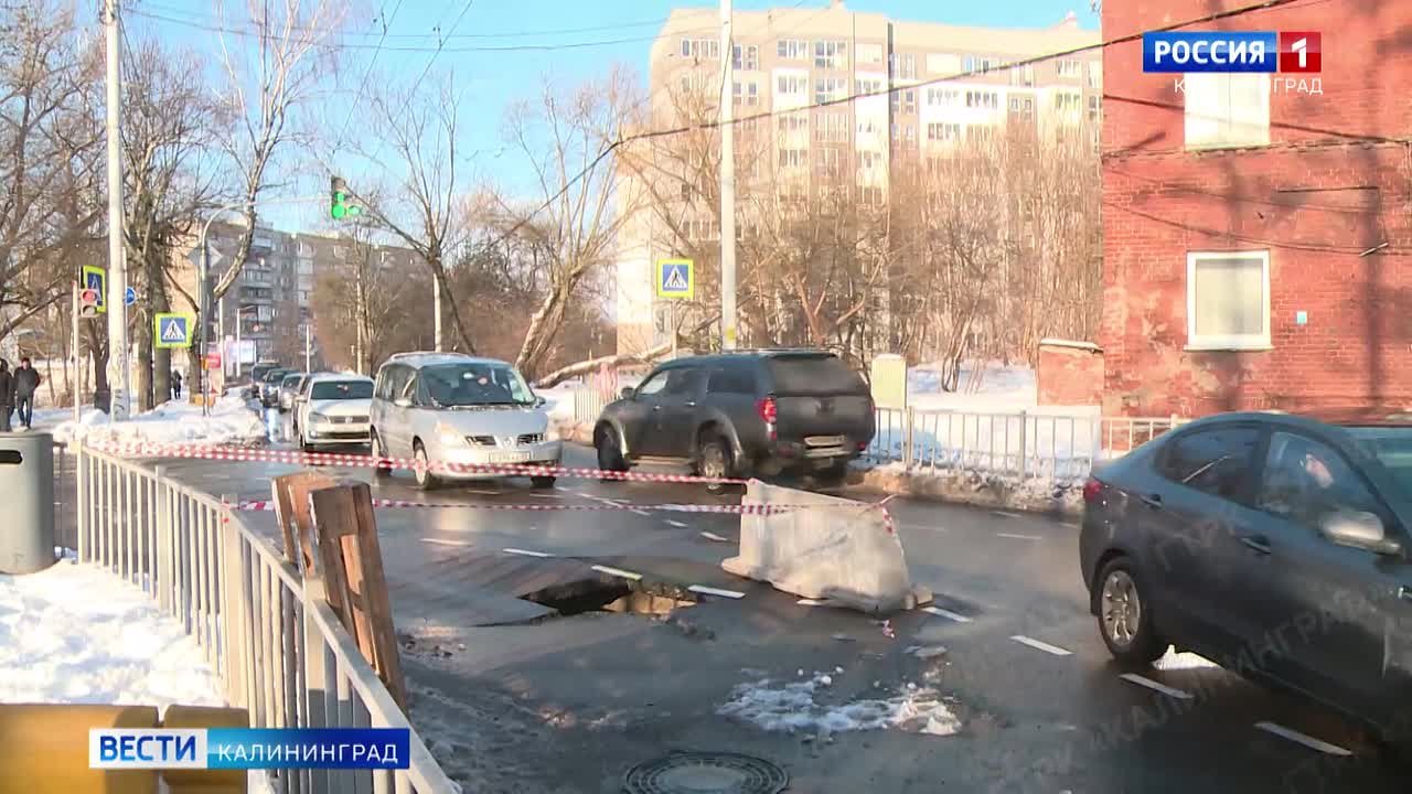 На пересечении ул. Судостроительной, Батальной, Инженерной провалился асфальт, движение троллейбусов маршрута №1 к конечной станции оказалось заблокировано.