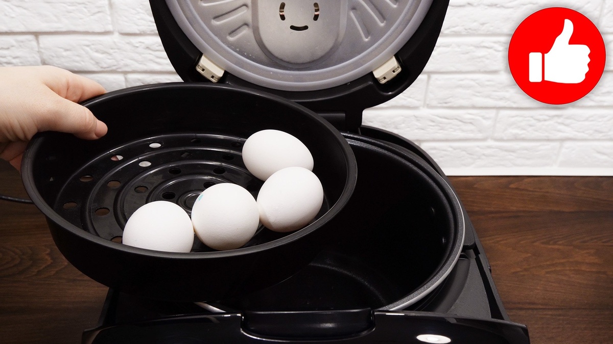 Начать стоит с варки яиц. В чашу мультиварки налить воду и установить паровую корзину с яйцами. Включить режим «На пару» и готовить в течение 10 минут. После завершения, яйца остудить и очистить от скорлупы.
