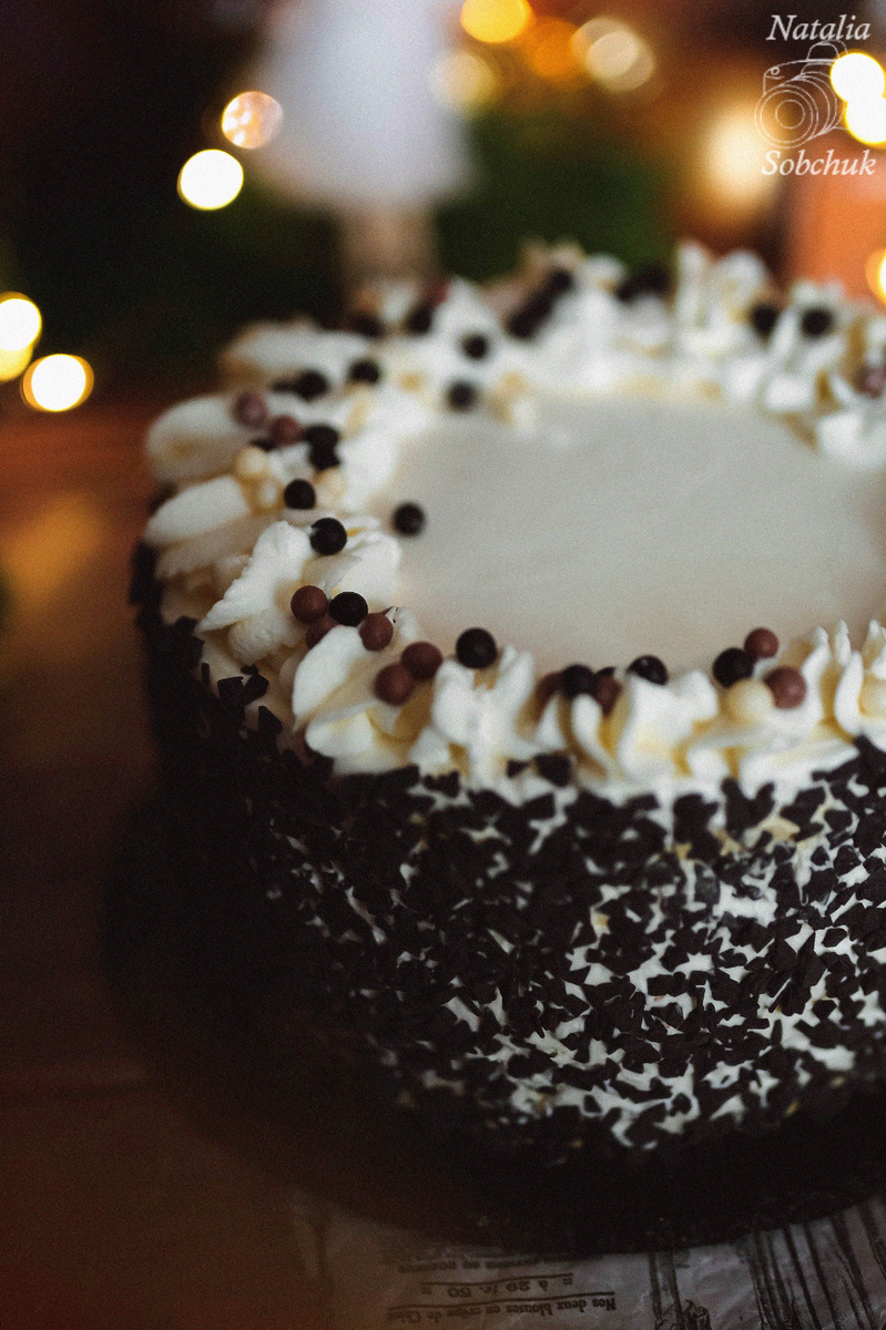 Соберите торт, укладывая коржи друг на друга, и не забудьте добавить банан для разнообразия вкуса. Финальная стадия — стабилизация. Оберните торт пленкой и оставьте в холодильнике минимум на 5 часов.
