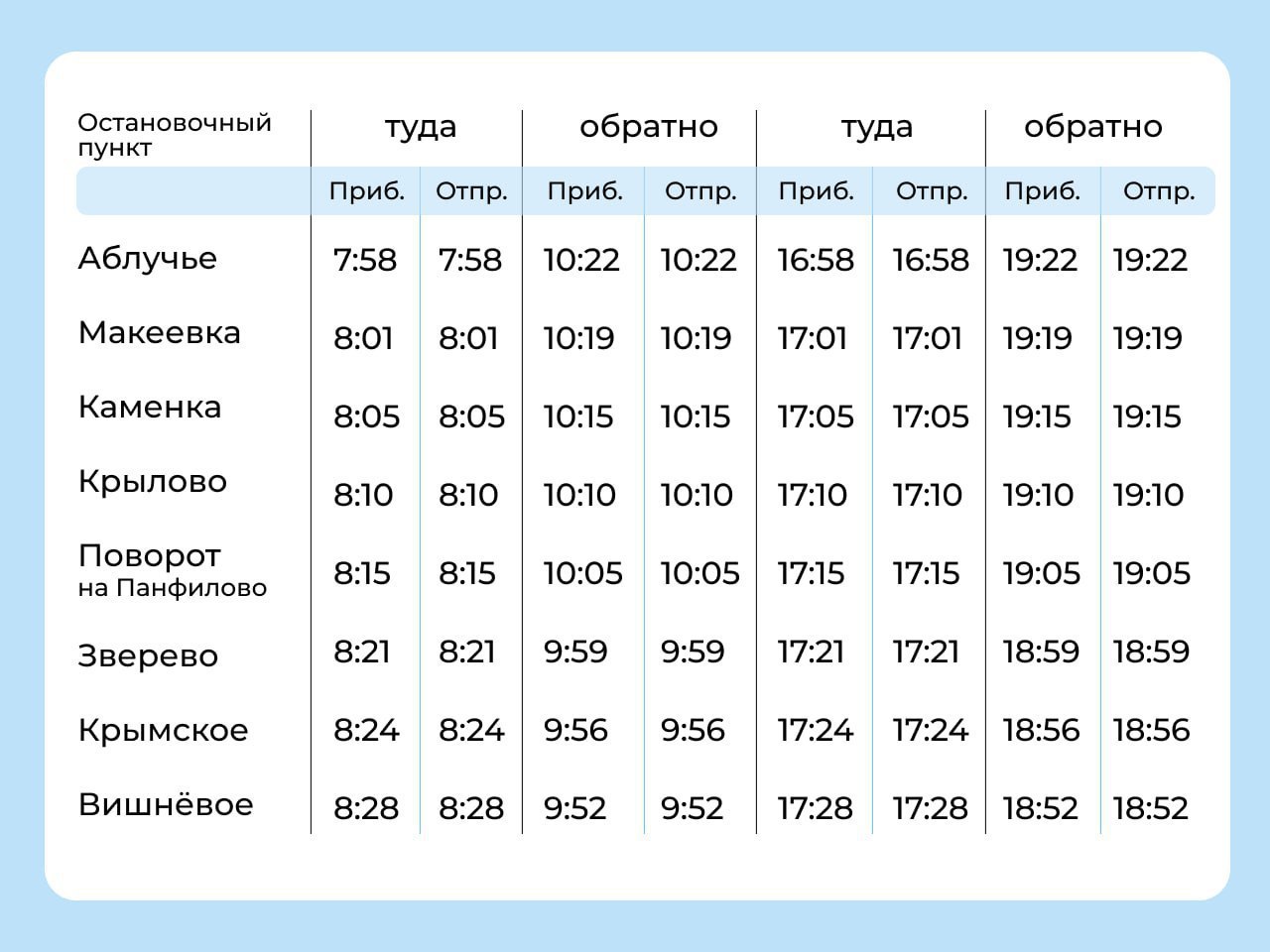 Микроавтобус ходит ежедневно, круглогодично, совершая два кругорейса в день.