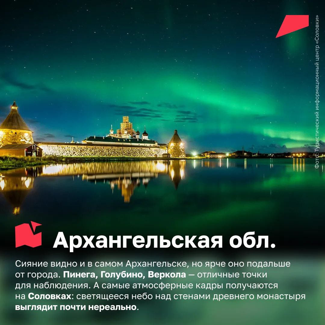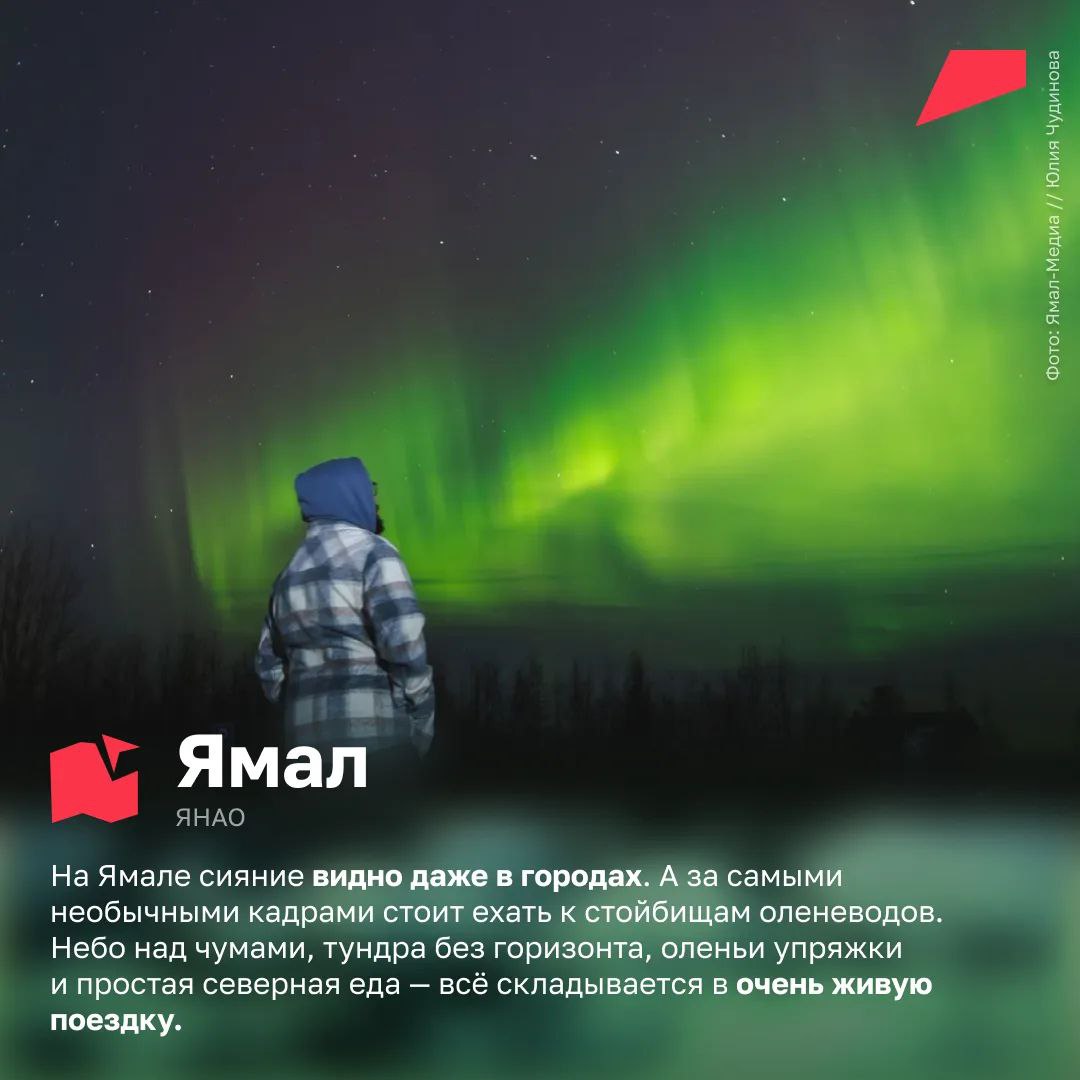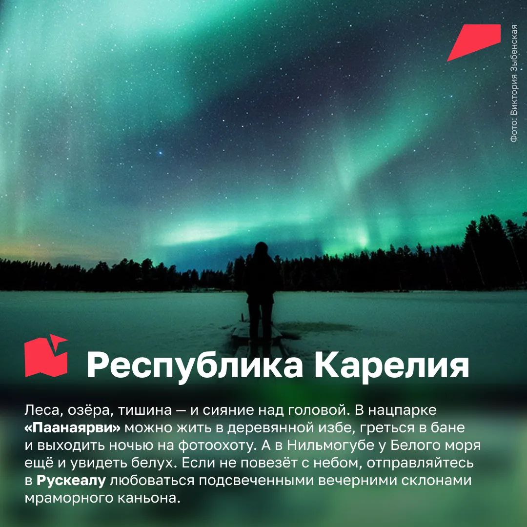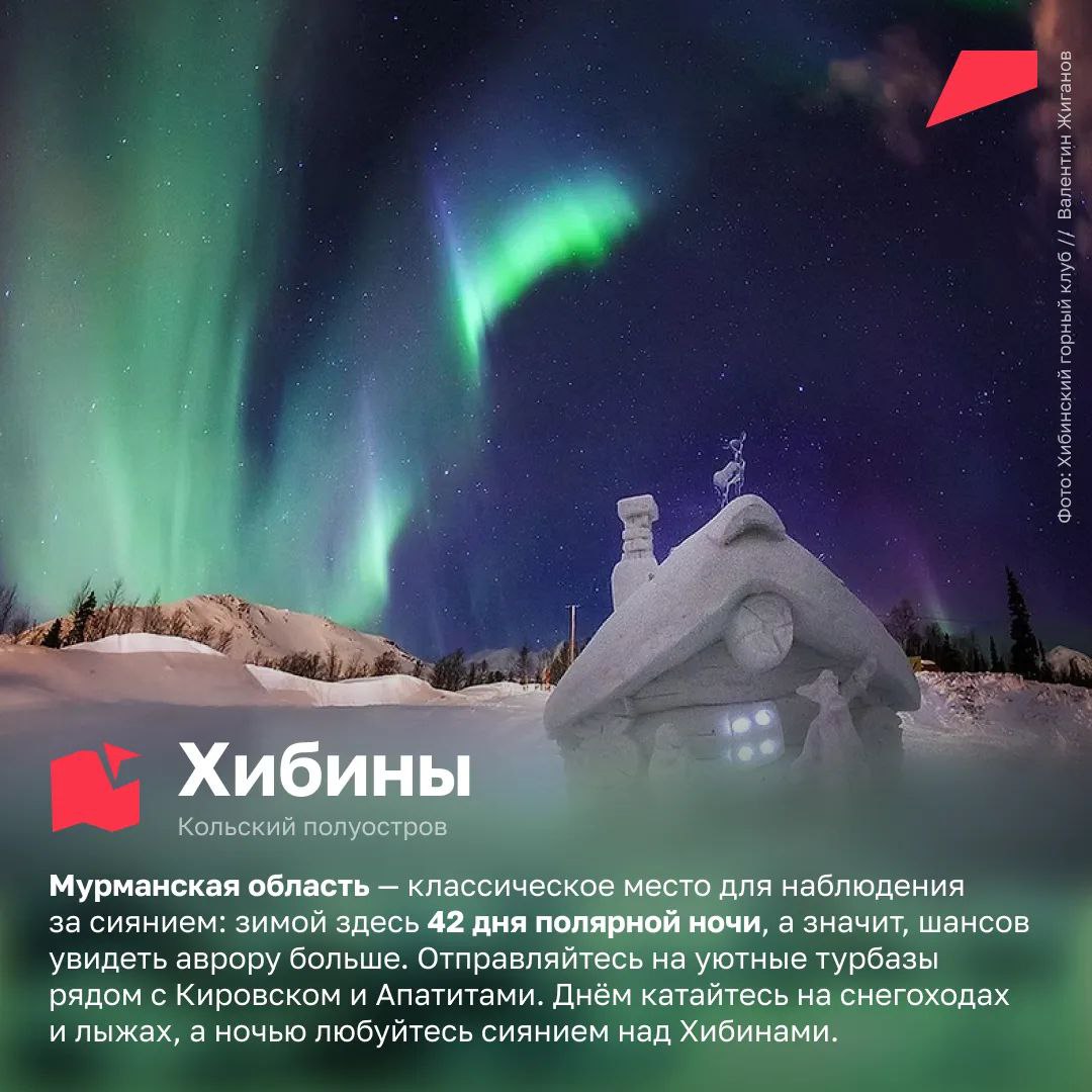 Лучше всего ловить это волшебное природное явление с сентября по март. Мы собрали для вас 10 мест, где можно увидеть северное сияние в России