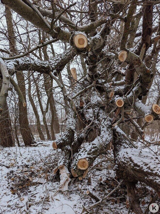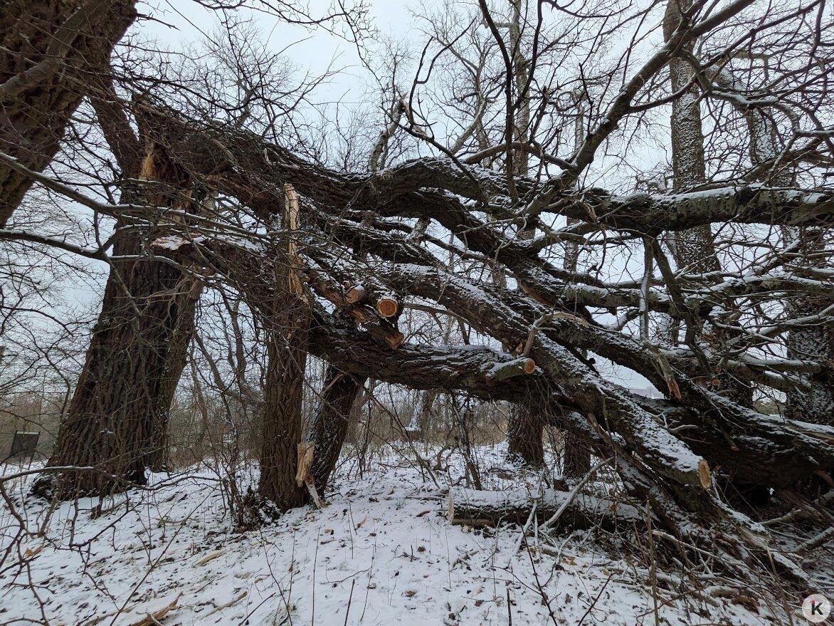 Самые толстые ветки оказались спилены: по слухам, жители посёлка разобрали их на дрова.