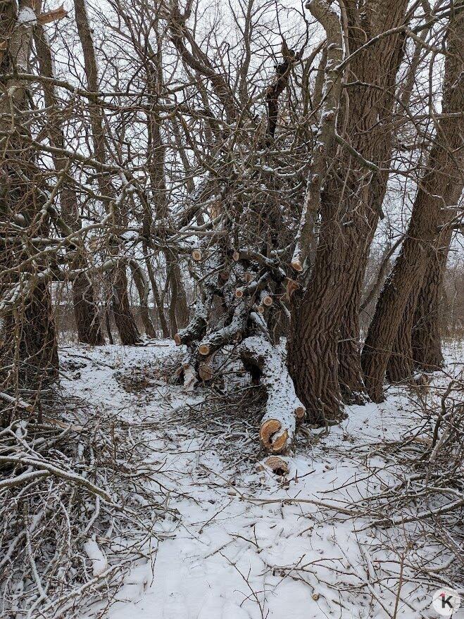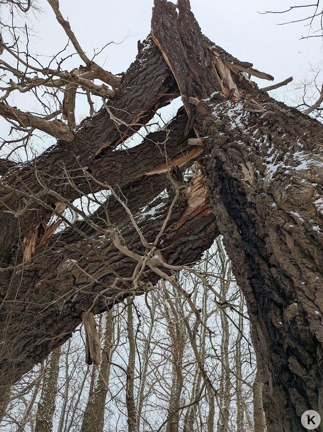 Но приближаться к павшему исполину большинство опасается: одно неловкое движение — и смельчака может придавить. Впрочем, уже в первые дни января тополь утратил добрую половину кроны.