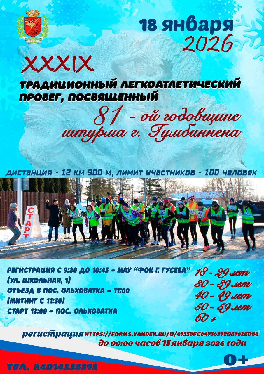 В воскресенье, 18 января, состоится традиционный легкоатлетический пробег, посвященный 81-й годовщине штурма города Гумбиннена.