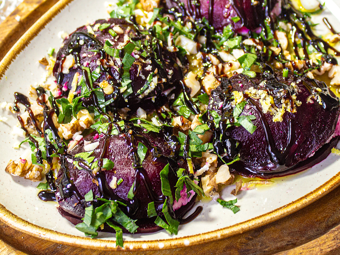 Праздничное настроение и восхитительный вкус можно легко создать, используя основные продукты. В этом рецепте свекла преобразуется в стильное кушанье, сочетающее яркие цвета и изысканный вкус.