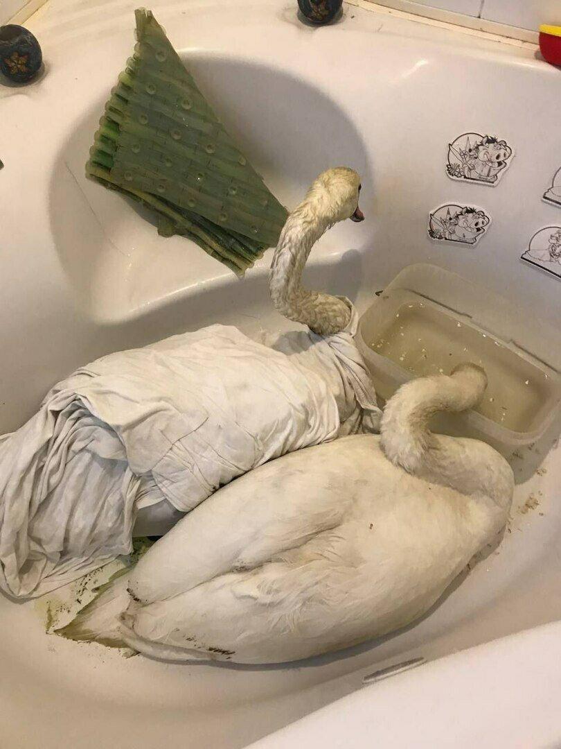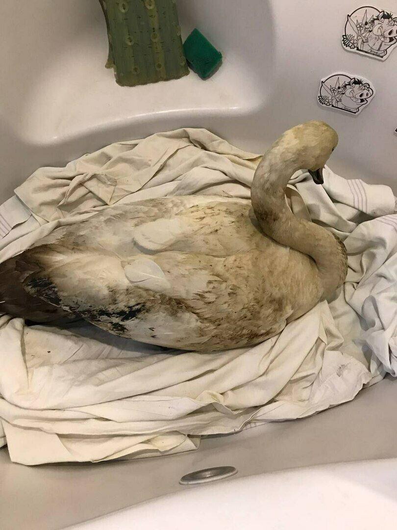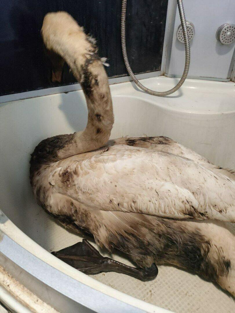 14 птиц, спасённых в Балтийске, до сих пор в стационаре. Половина из них — под постоянным наблюдением. Уже после того, как слив ГСМ прекратился, волонтёры не раз замечали на заливе погибших лебедей.