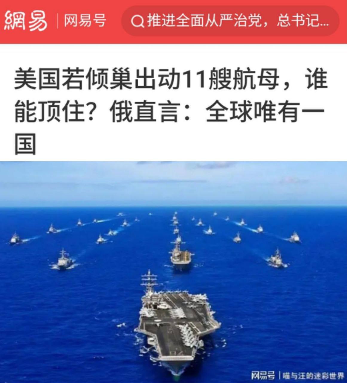 «Если бы США задействовали все 11 своих авианосцев, кто бы смог это выдержать? В мире на это способна лишь одна страна»: В Китае уверены, что Россия способна уничтожить все 11 авианосных ударных групп ВМС США.