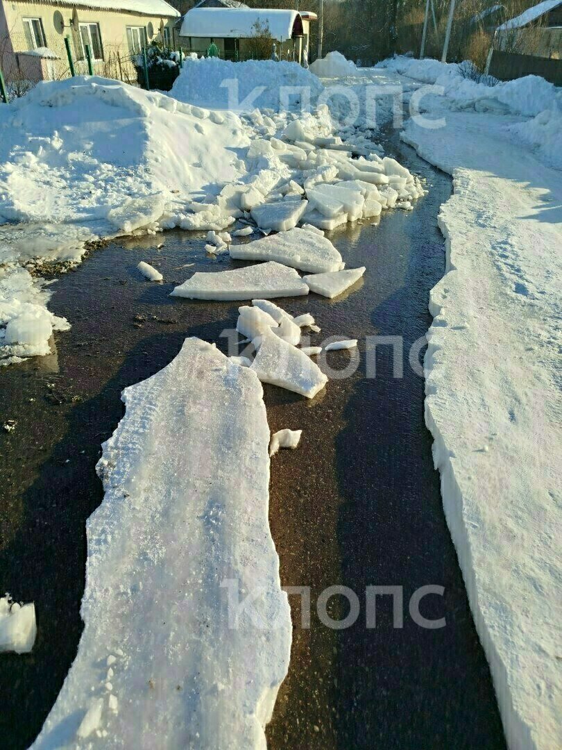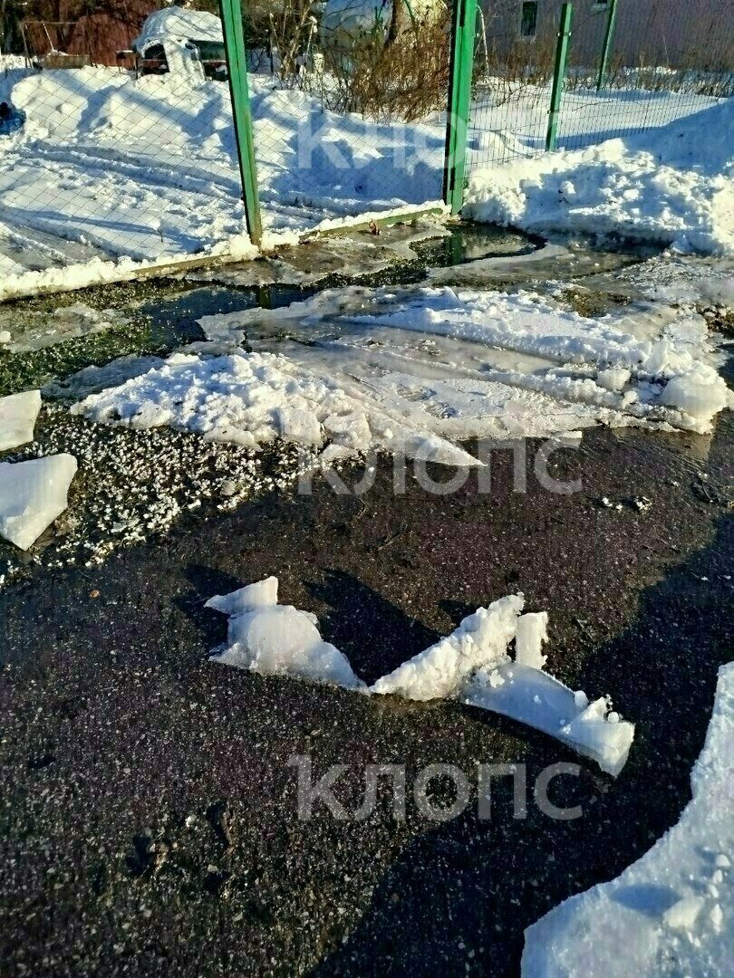 По словам местной жительницы Юлии, из-за повреждения трубы перекрёсток на улице Центральной между строениями №9 и №11 оказался залит водой и сковался льдом. Это осложнило выезд для жителей нескольких домов.