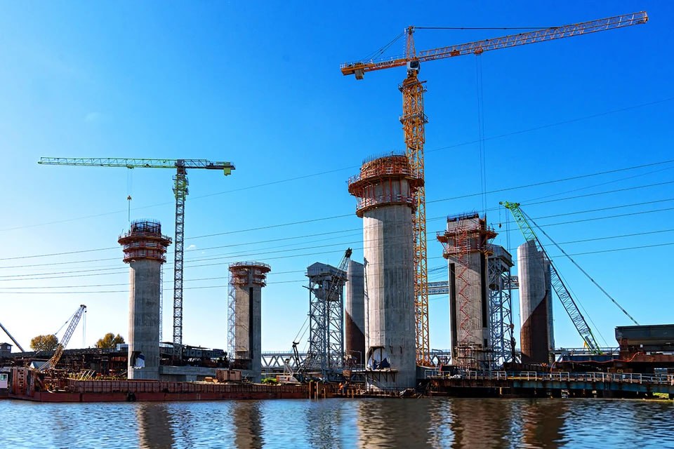 Смонтированы противовесы подъемного механизма нового моста через Преголю в Калининграде