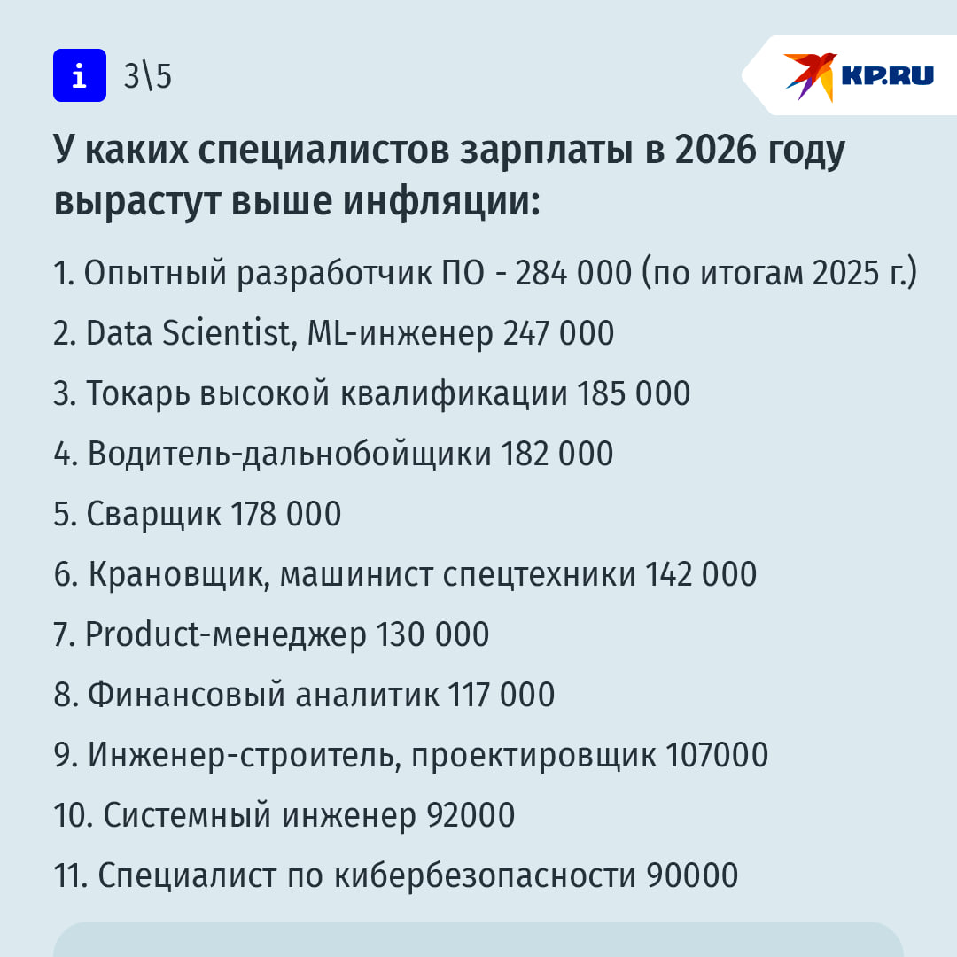 По прогнозу Центробанка, инфляция в 2026 году составит 4–5%, что и станет ориентиром для индексации. Подробности — в карточках «Комсомолки»
