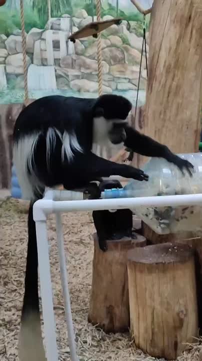 В Калининградском зоопарке у колобусов появилась новая игрушка — «барабан» из сантехнических труб. Сделал его сантехник Василий во время новогодних дежурств.