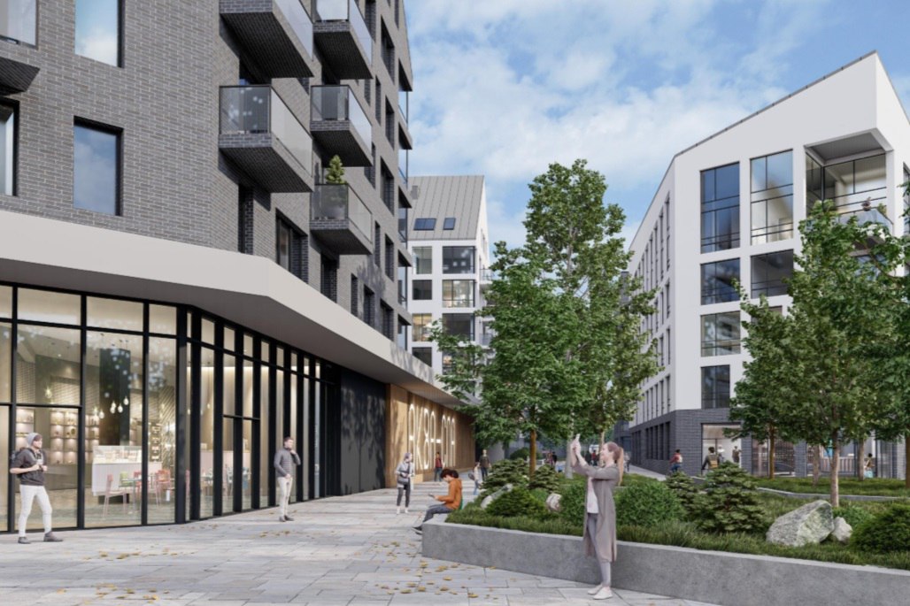 Новый комплекс планируют разместить на улице Хуторской. Здания рассчитаны на 194 квартиры. В домах оборудуют коммерческие помещения, в том числе спа-центр с бассейнами и фитнес-залом. В качестве социального обязательства инвестор спроектировал детский сад на 130 мест, который передадут муниципалитету.