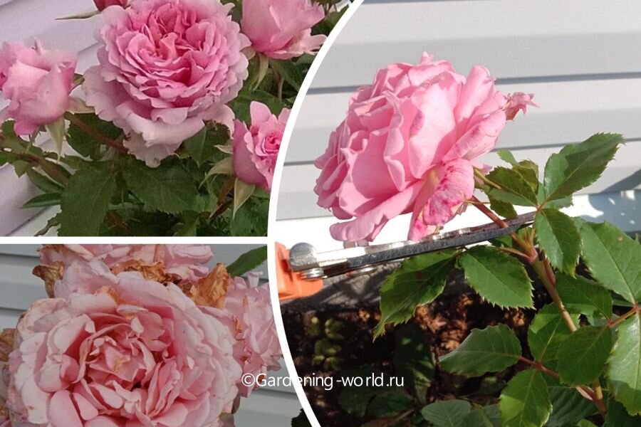 - Срезайте стебли под увядшими цветами, оставляя 4 здоровых листа, чтобы продолжать обогащать куст новыми бутонами.