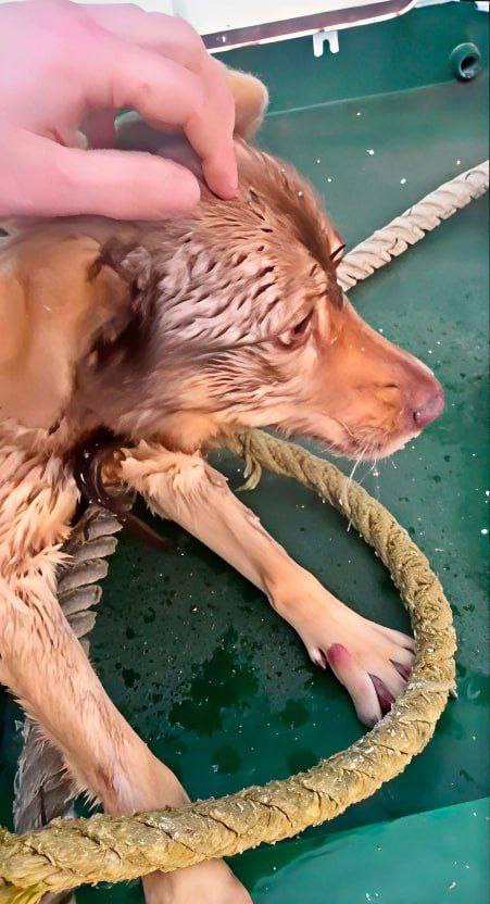 Пес метался у кромки льда и не мог выбраться из воды. Моряки сразу остановились и начали спасательную операцию. На помощь ушло всего около 15 минут. Ослабевшее животное вытащили из ледяной воды и подняли на борт.
