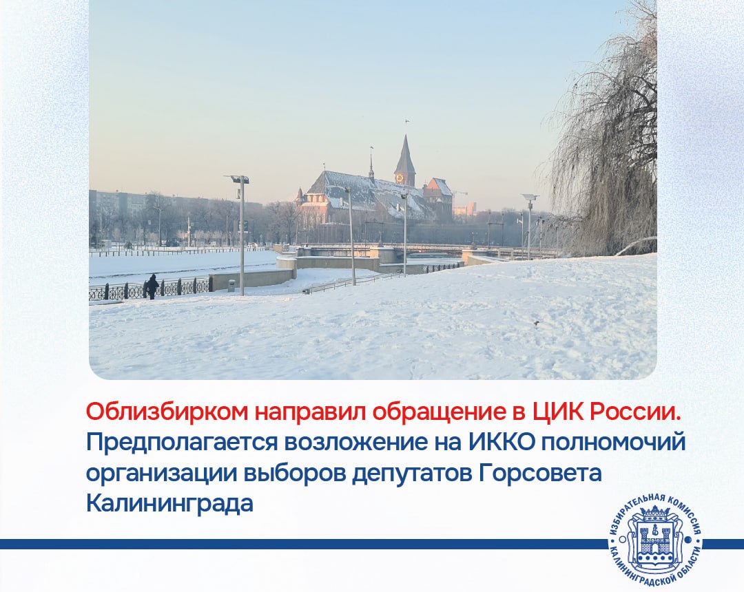 Облизбирком принял решение обратиться в ЦИК России, чтобы согласовать возложение на Областную комиссию полномочий по подготовке и проведению выборов депутатов Горсовета Калининграда