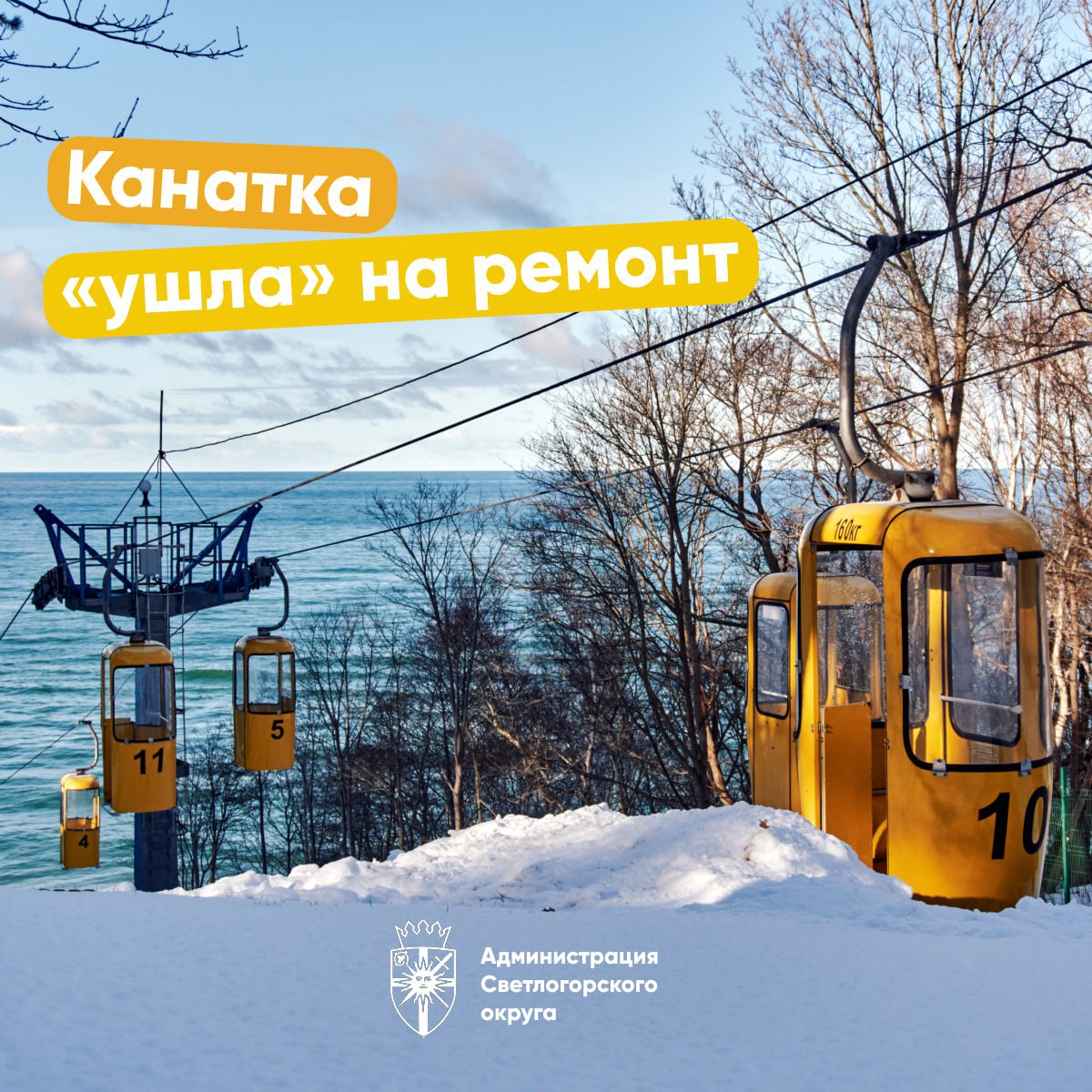 В Светлогорске закрыта канатная дорога на профилактический ремонт до 20 февраля.