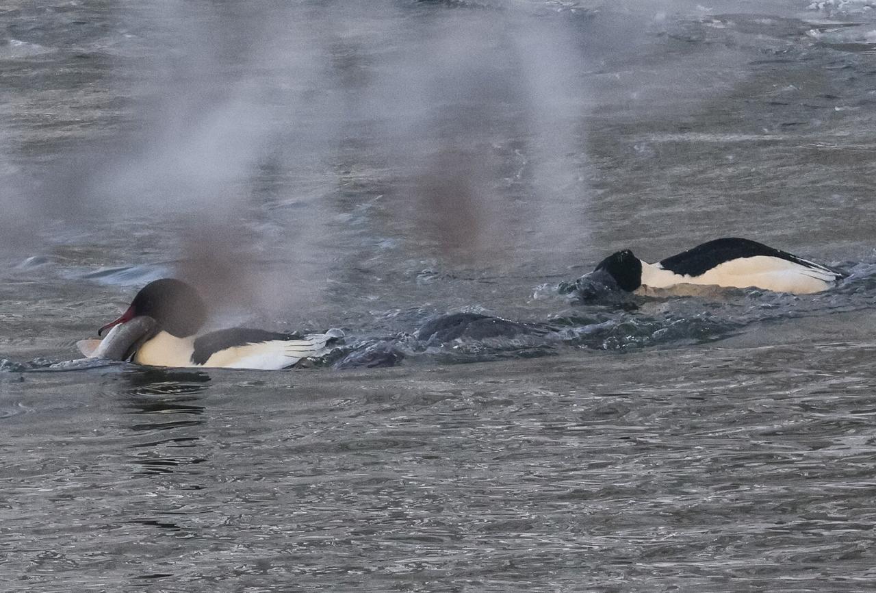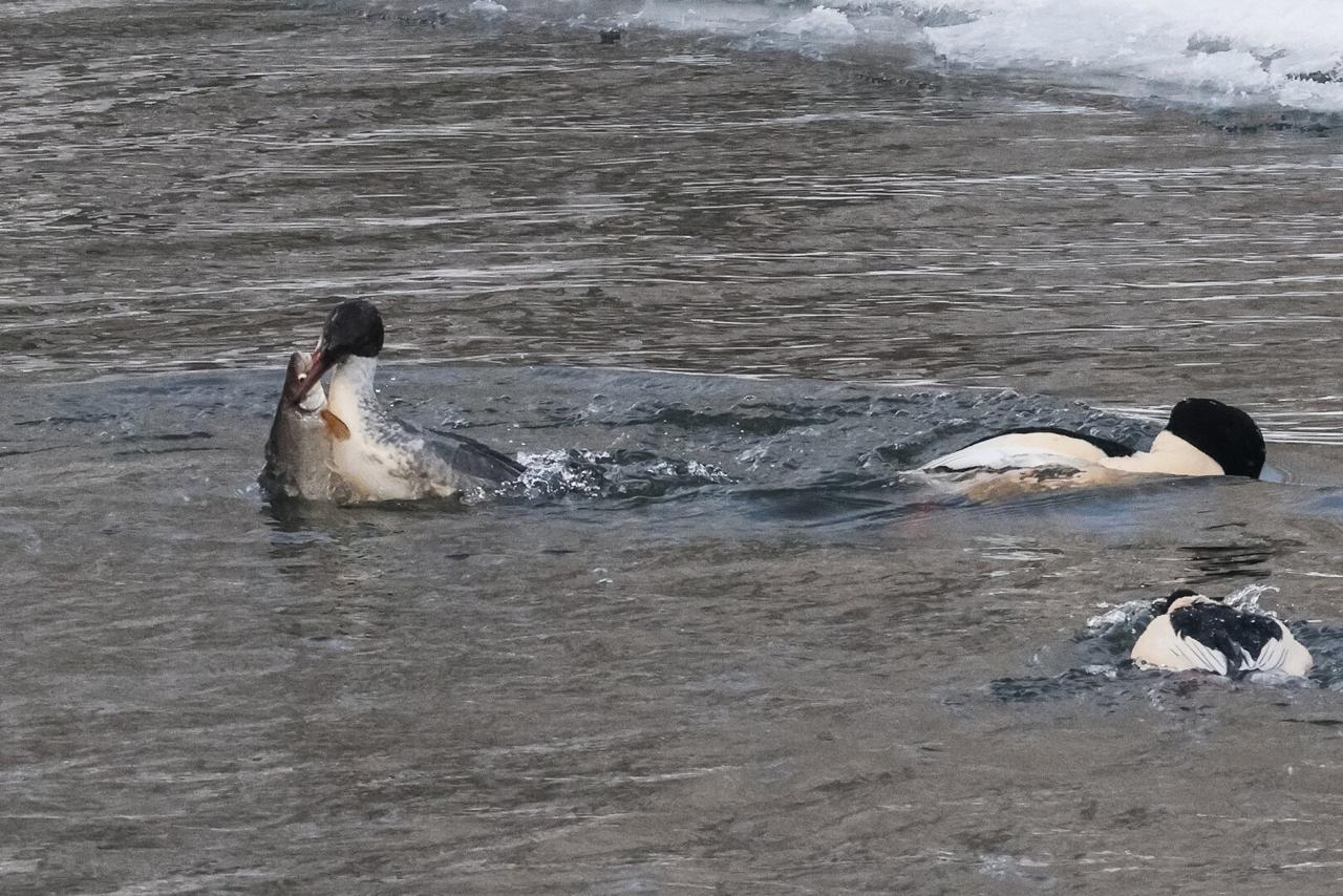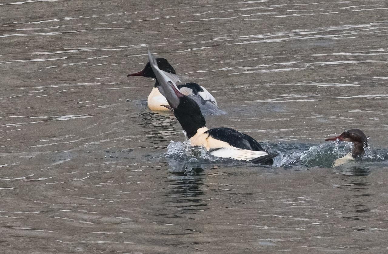 Это наш размерчик: стая крохалей на Анграпе пировала, целиком заглатывая огромных для себя рыбин