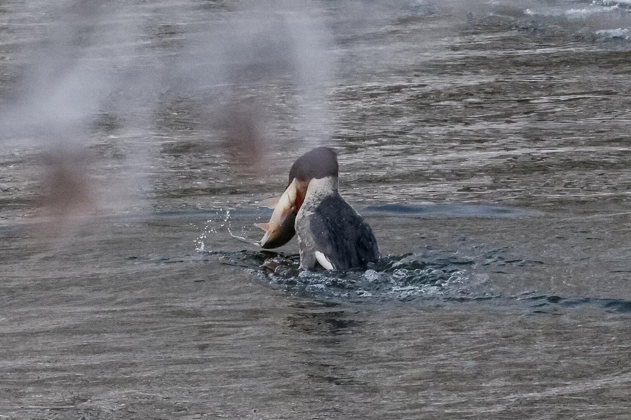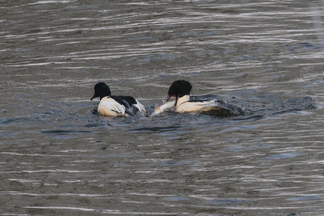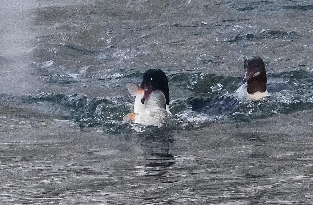 Это наш размерчик: стая крохалей на Анграпе пировала, целиком заглатывая огромных для себя рыбин