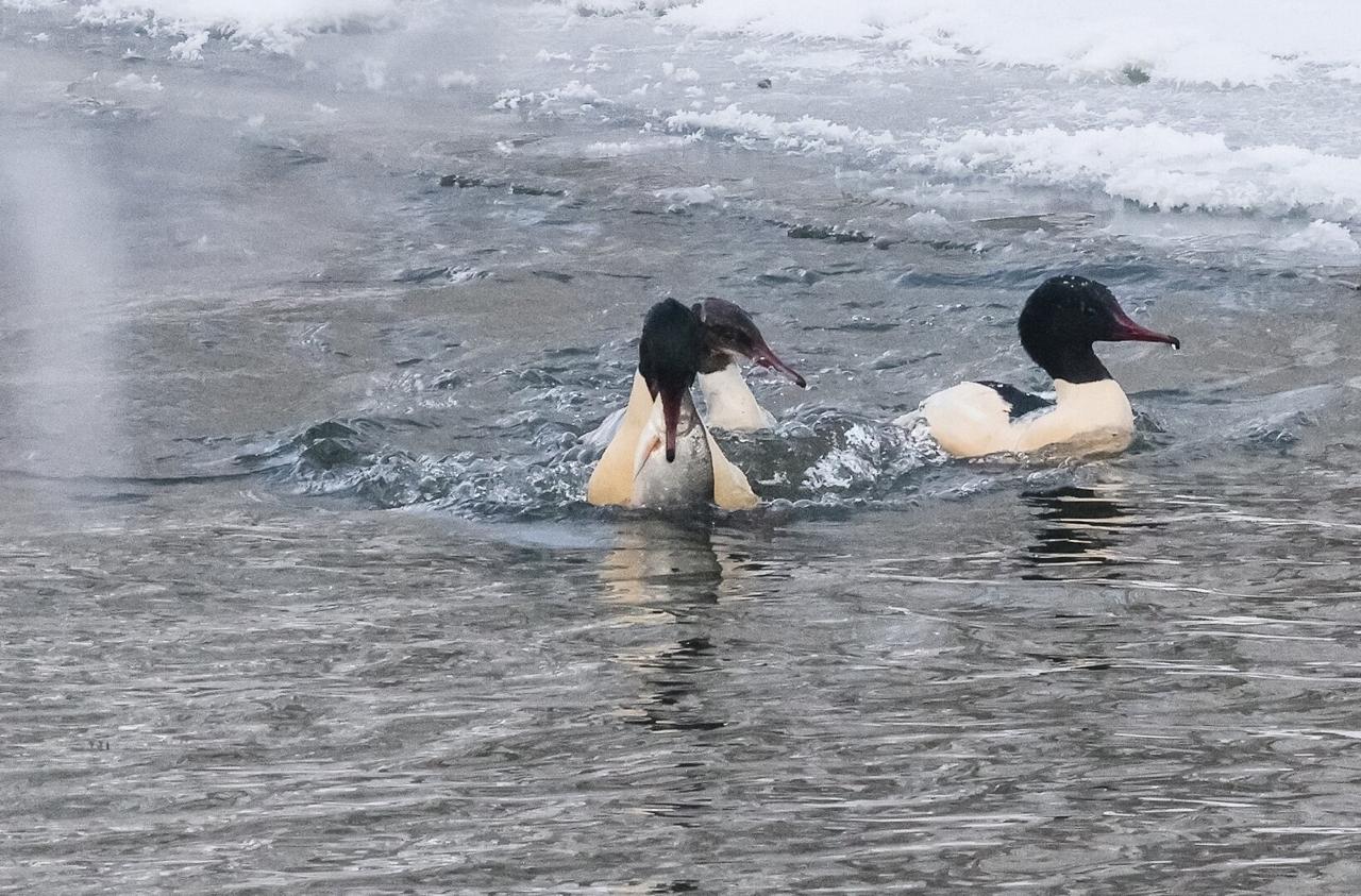 Фотограф из Черняховска Юрий Таркин застал на Анграпе настоящее пиршество крохалей. Репортаж он опубликовал в паблике «Природа и история Калининградской области».