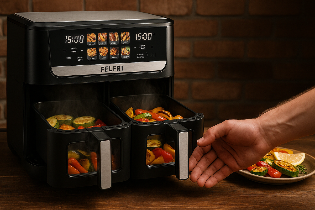 Модель FELFRI FF-AF-04, вместимостью 11 л и мощностью 3200 Вт, обеспечит быстрое разогревание и отличную корочку. Оснащён 10 программами и керамическим антипригарным покрытием для лёгкой уборки. Это находка для любителей быстрых и полезных блюд.