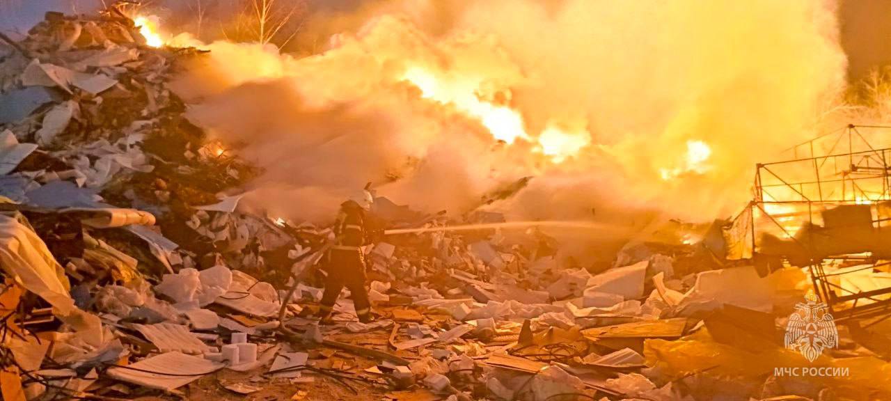 На базе по утилизации отходов горит мусор. Площадь пожара 400 квадратных метров. С огнём борются 19 человек личного состава и 6 единиц техники МЧС России.