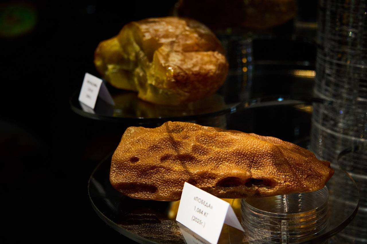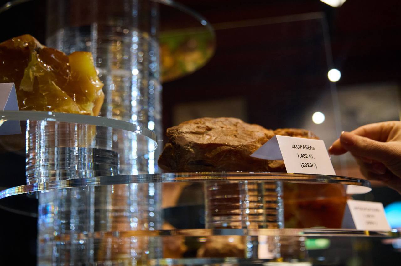 Экспозиция «Дар Земли — 2025» будет работать две недели. Янтарный комбинат представил 13 самородков, которые добыли за 2025 год. Среди экземпляров — камни «Рекордсмен» весом 2,4 килограмма и «Победа», название которому выбрали в соцсетях.