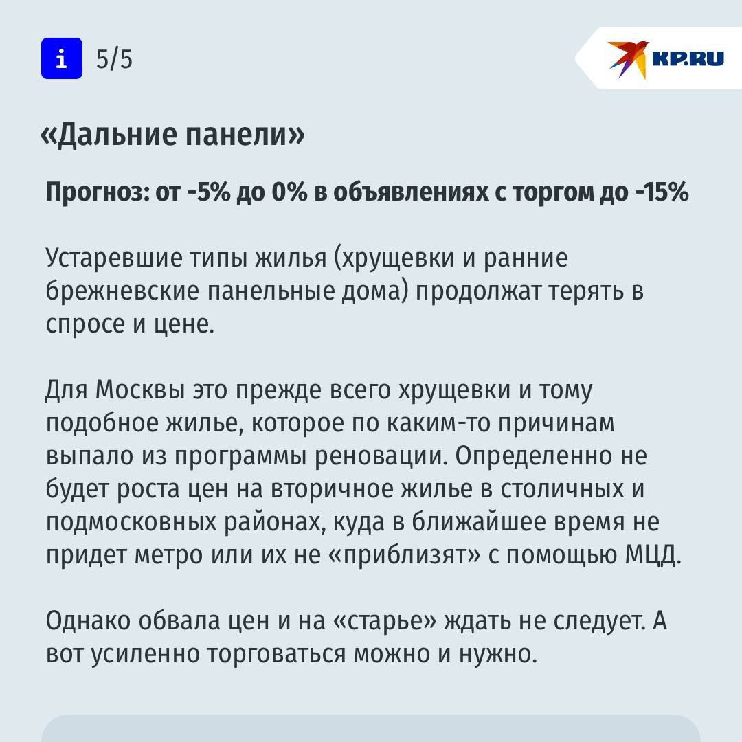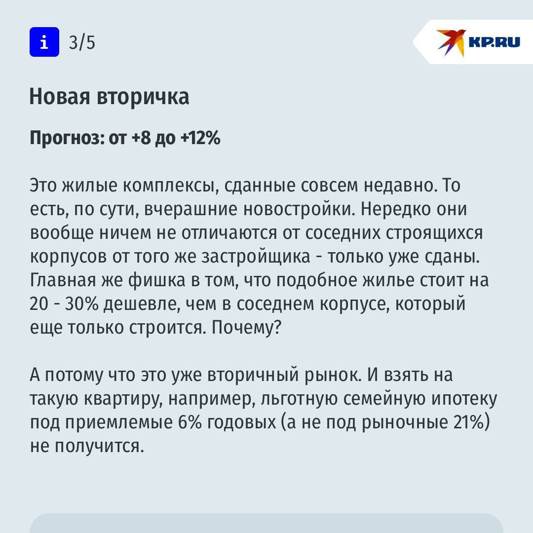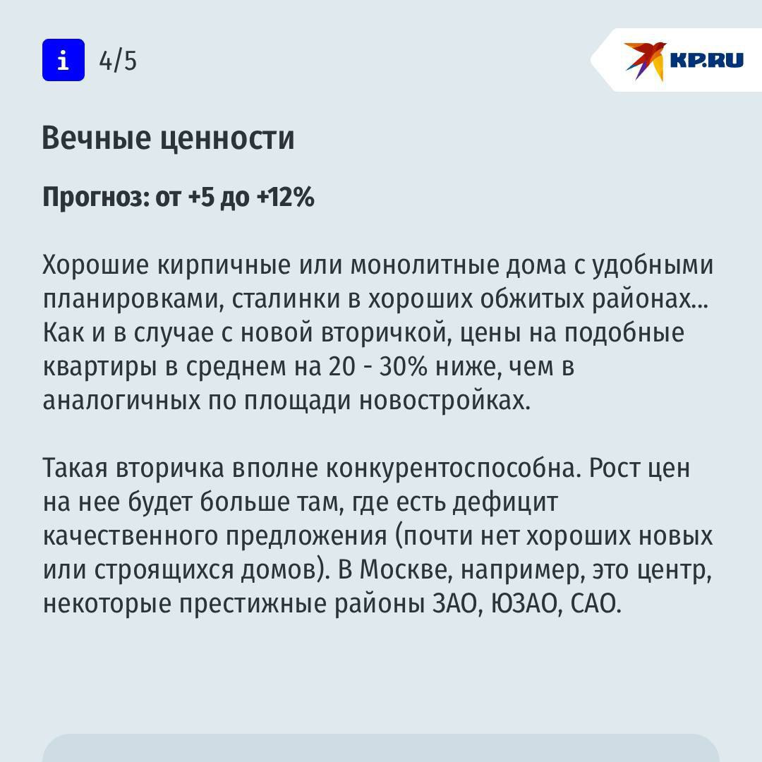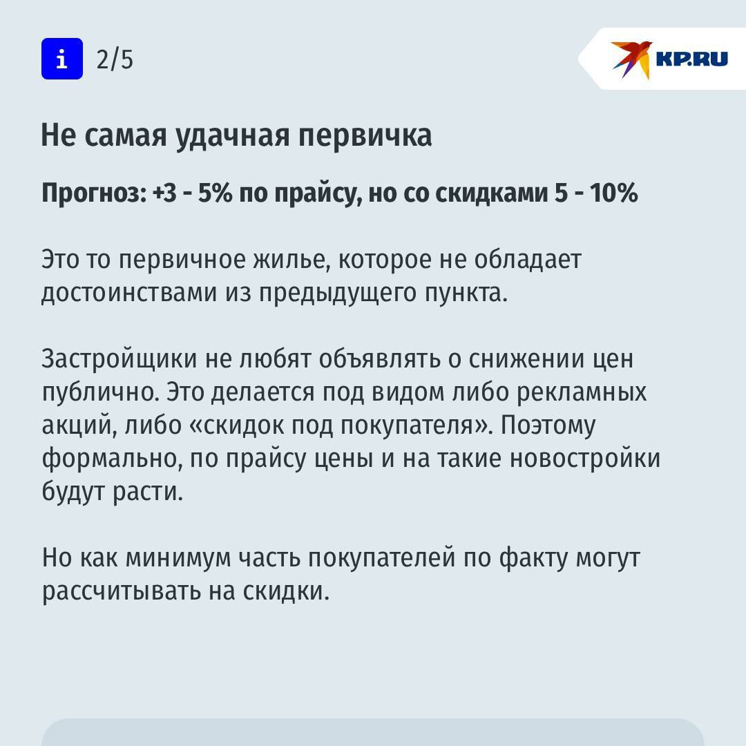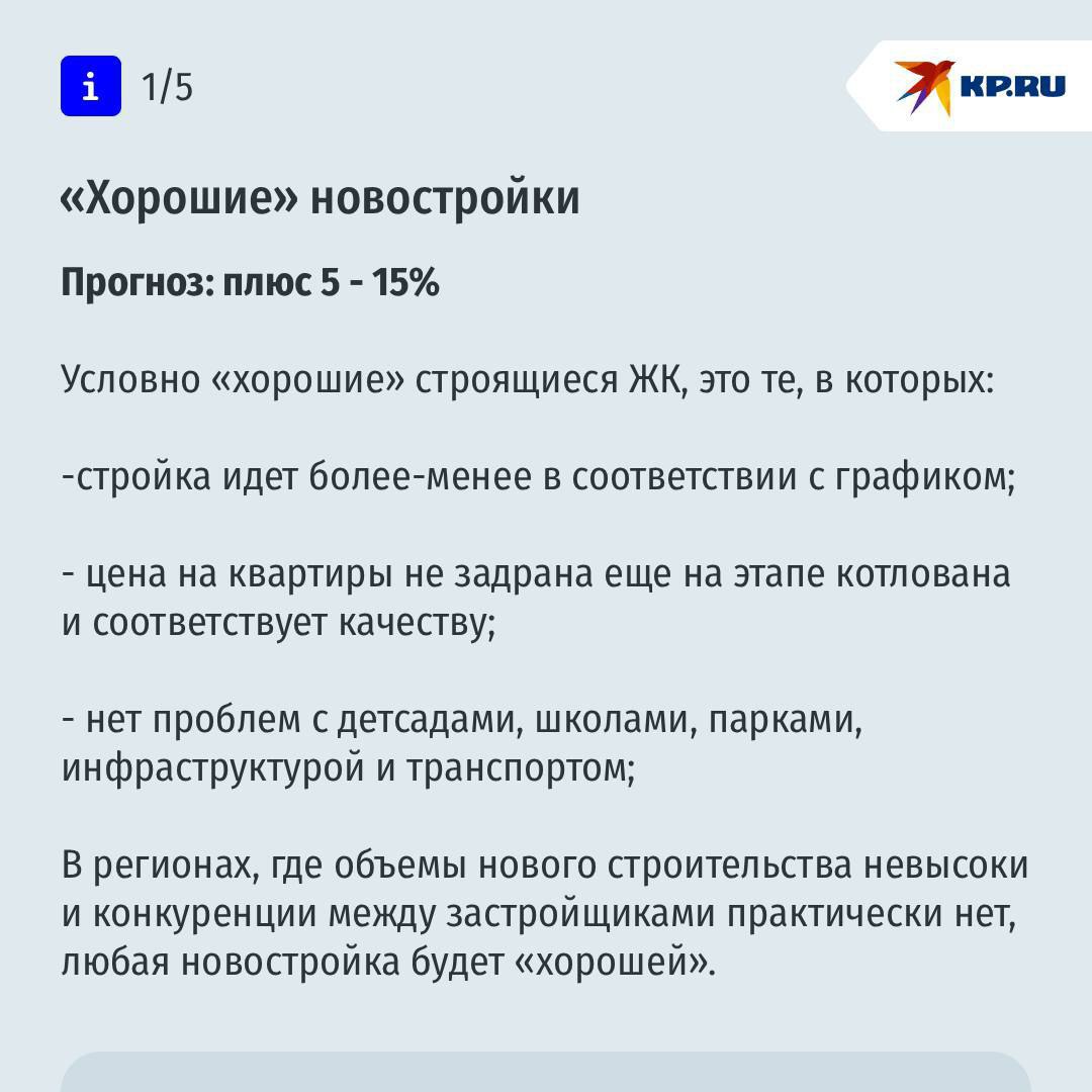 Эксперты говорят: единого сценария не будет. Всё зависит от конкретных условий — города, типа жилья (новостройка или «вторичка»), района, транспорта, инфраструктуры и даже возраста дома. Где-то цены могут вырасти, а где-то — остаться на месте или скорректироваться.