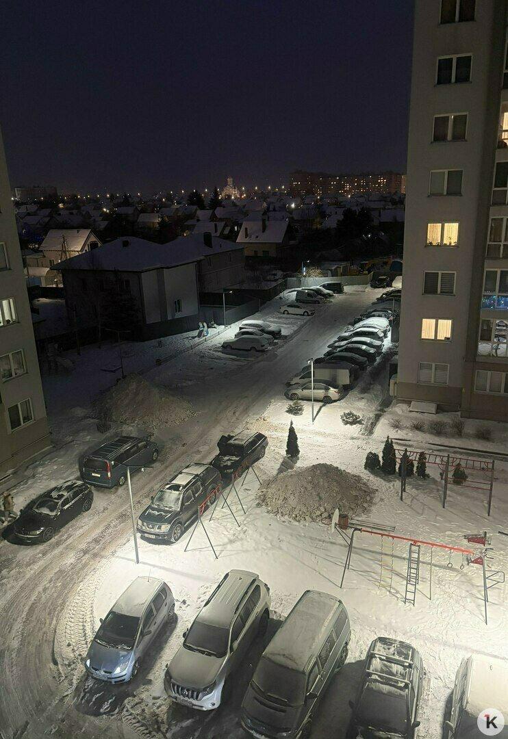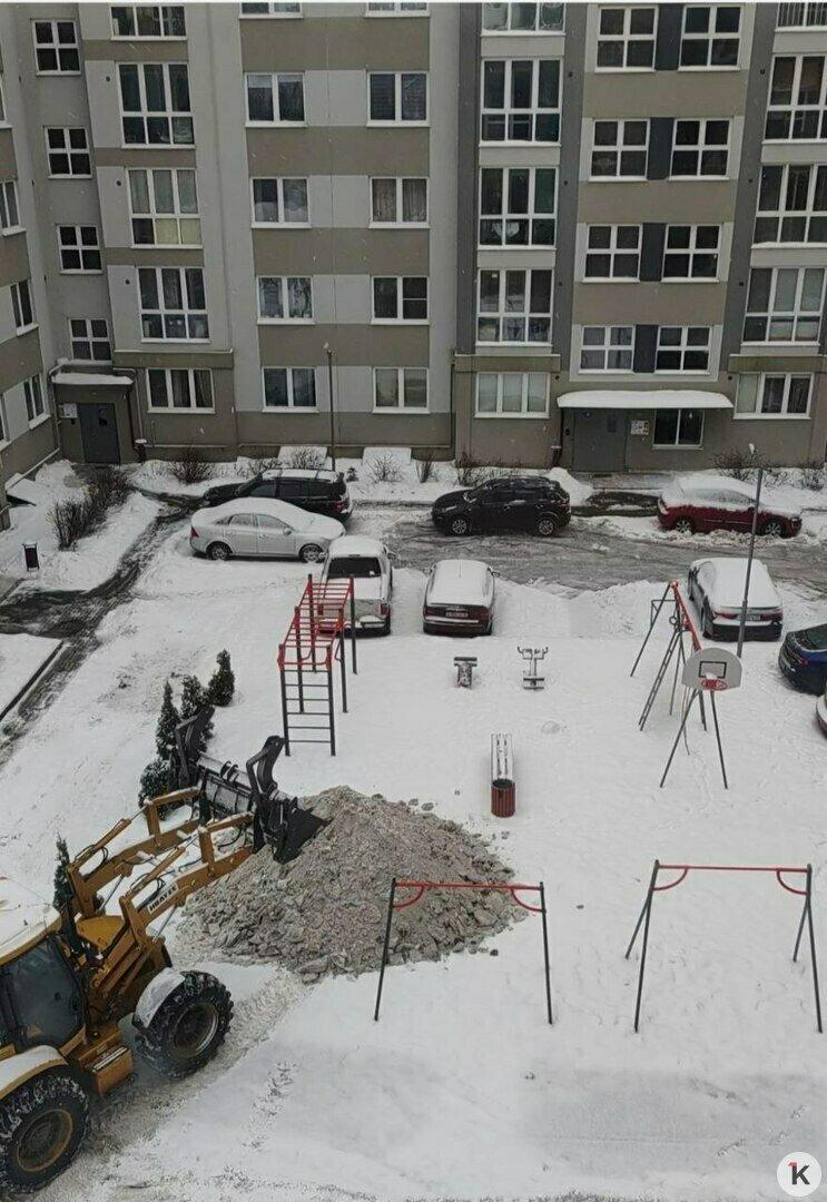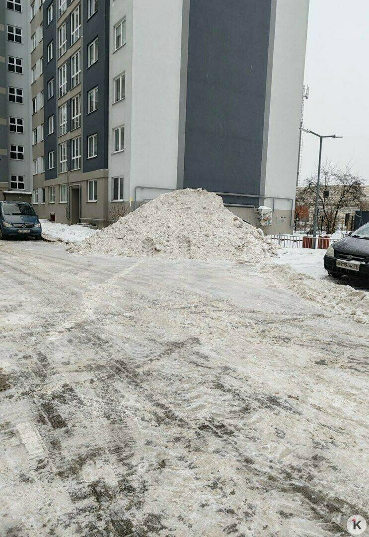 На улице Свердлова в Калининграде снег во время уборки сгребли на детскую площадку и парковку