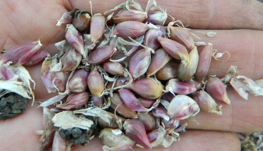 Озимый чеснок в процессе роста образует стрелку, на конце которой формируется соцветие. После цветения на этом месте созревают семена, известные как бульбочки. Чтобы повысить качество вашего посадочного материала, следует оставить 2-3 стрелки, выломав остальные. Это позволит семенам созреть. Однако не стоит затягивать со сбором: если стрелки перерастут, бульбочки могут осыпаться.
