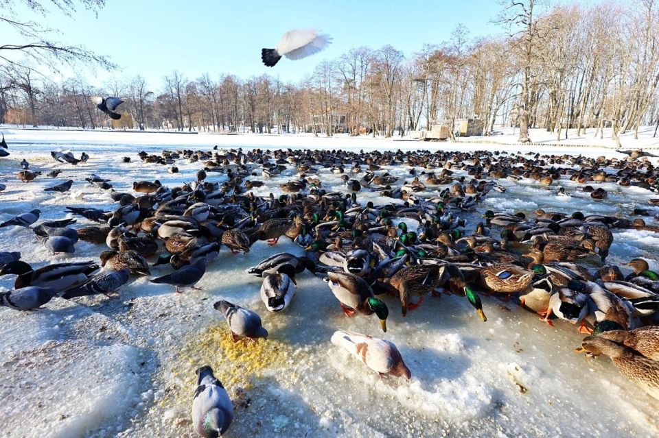 Спасают птиц, которые примёрзли, покрылись льдом или выглядят вялыми и болезненными. Остальные могут прилетать с открытой воды на заледеневший пруд, просто чтобы подкормиться. В парк регулярно приносят корм гости курорта.