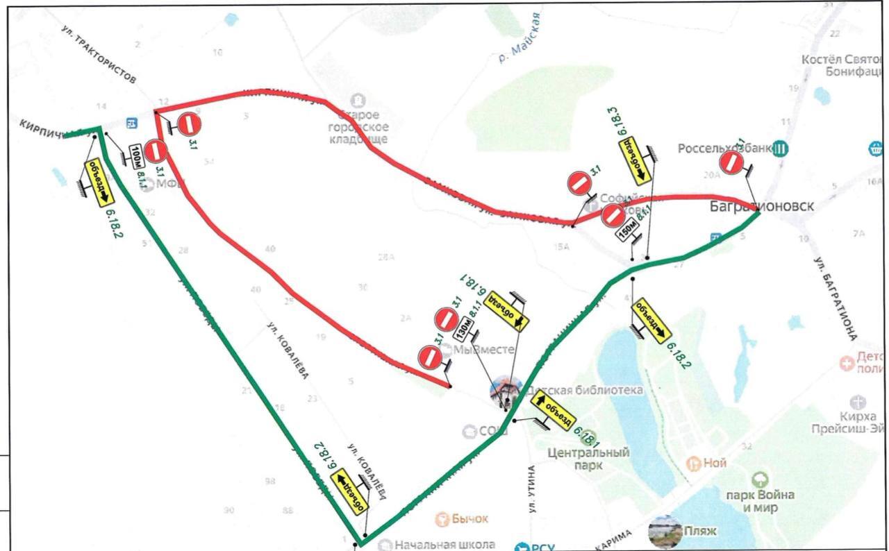 В связи с проведением забега с 10:00 до 15:00 временно вводится ограничение на движение транспортных средств на участках улиц Спортивной, Кирпичной, Замковой, Промышленной и Красноармейской. Автомобили можно оставить на парковке ландшафтного парка «Война и Мир» на улице Ф. Карима.