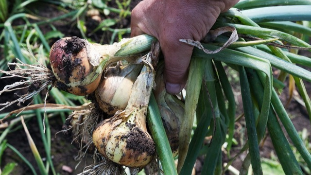 - Правильный метод: Извлекайте лук осторожно, используя садовые вилы. Так вы сможете избежать повреждений плодов.