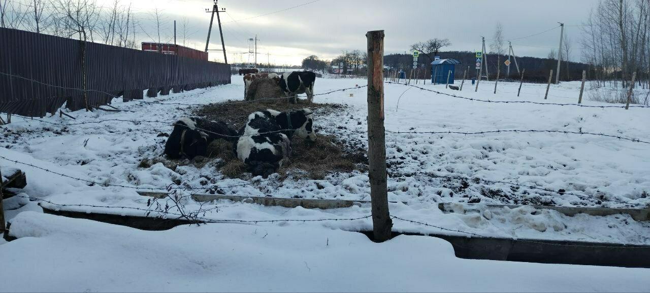 «Вчера ночью было -27, и ничего не меняется. Они без воды, грызут лёд. Сено только он им кидает, потом они сами по земле растаскивают, — рассказывает женщина. — Кто-то вчера на днях проезжал, говорит, что там корову рвало, а до этого другая прямо на поле этом дохла».
